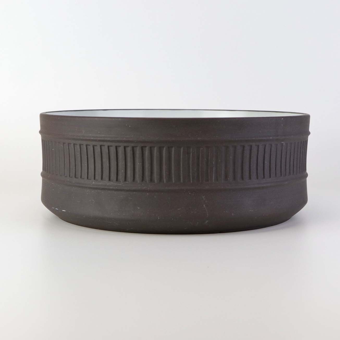 Stellet Flamestone har hvidt glasur indvendigt og ydersiden er i rå uglaseret stentøj
