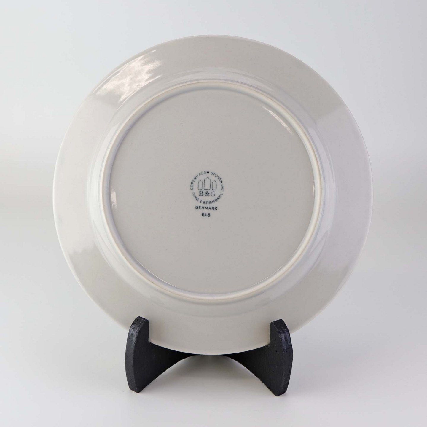Beskrivelse: Flad frokosttallerken i stentøj fra os ukendt stel Nr. 618