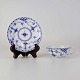 Musselmalet halvblonde er riflet hvidt porcelæn med dekoration af blå ranker og en kant med blonder.