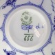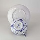 Musselmalet halvblonde er riflet hvidt porcelæn med dekoration af blå ranker og en kant med blonder.
