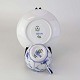 Musselmalet halvblonde er riflet hvidt porcelæn med dekoration af blå ranker og en kant med blonder.