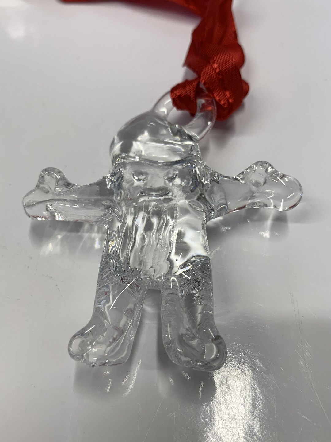 Beskrivelse: Super flot juleophæng i glas, designet af Bertil Vallien for Kosta Boda. Hæng den søde julemand på juletræet, en gren, i vinduet eller ned fra loftet. Den fremstår i flot og hel stand.