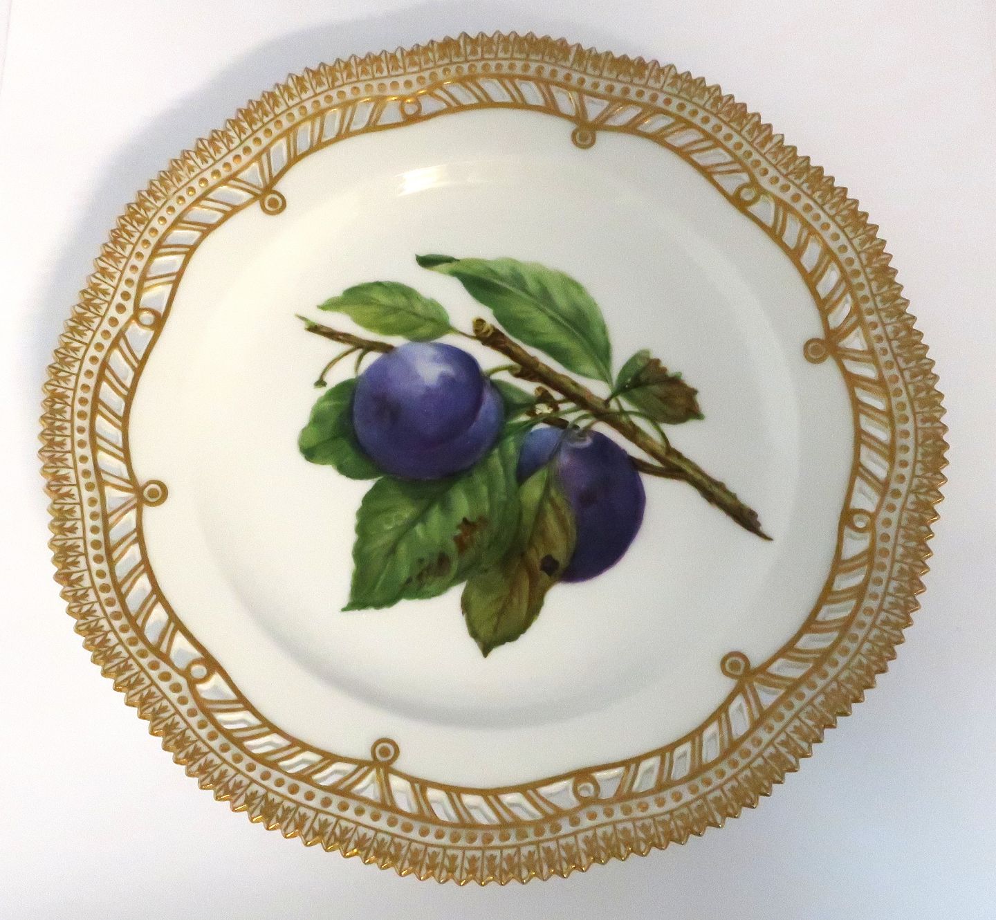 Royal Copenhagen, Flora Danica, frugttallerken. Frokost tallerken med gennemskåret bort. Design #429/3554. Diameter 23 cm. (1 sortering).