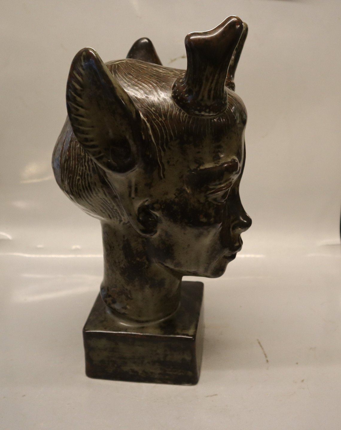 Beskrivelse: 21089 Kgl. "Aktæonhoved" JH juni 1951 Royal Copenhagen stentøj I fin og hel stand