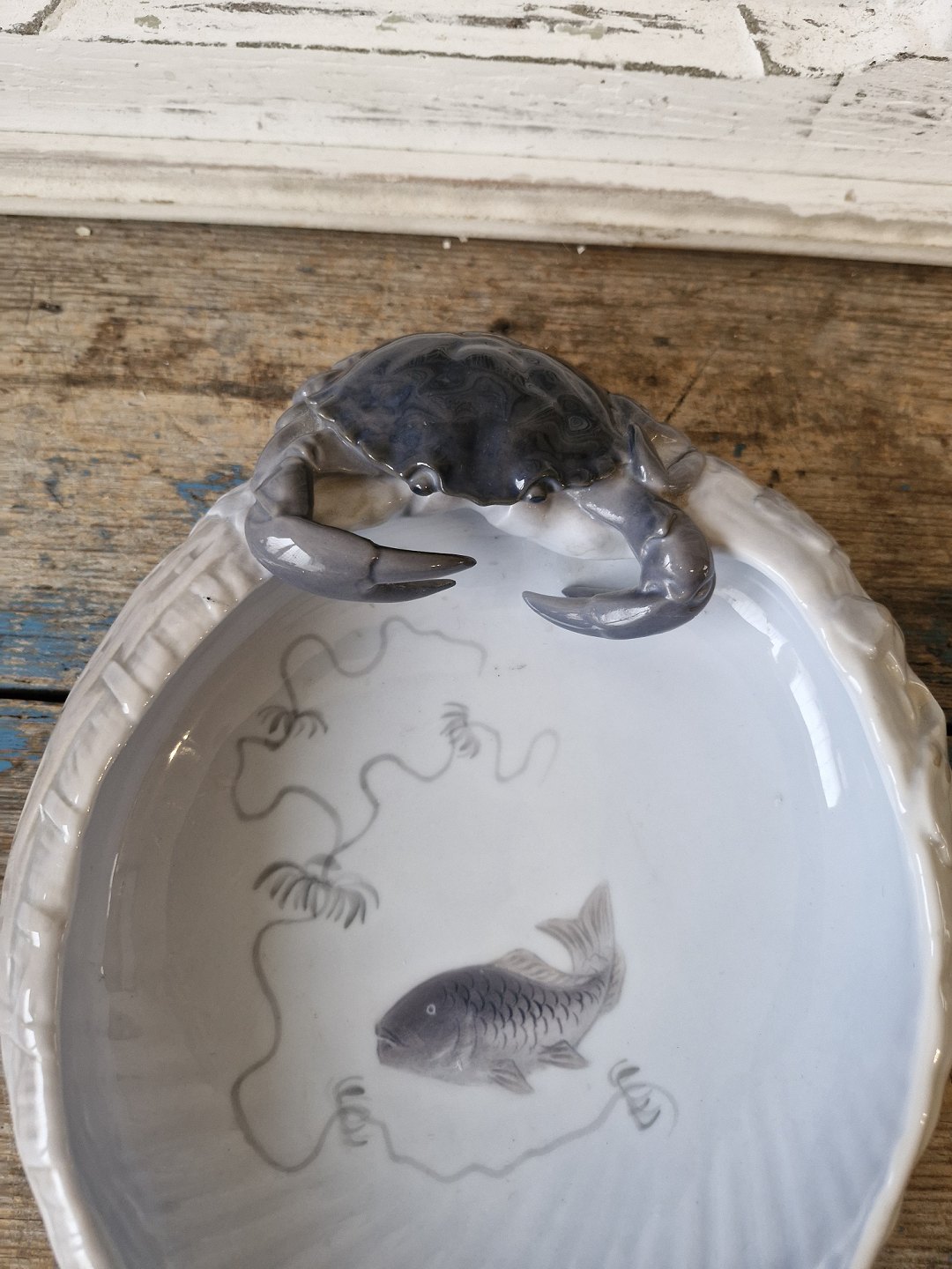 Description: Royal Copenhagen large bowl with crab and fish