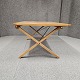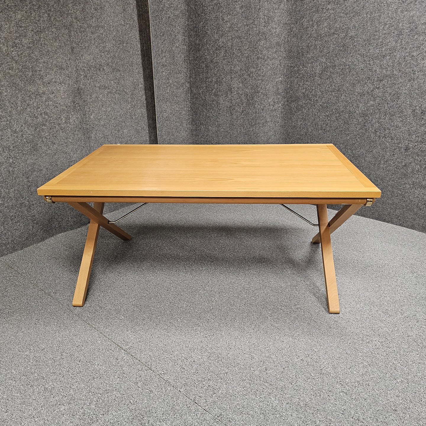 Beskrivelse: Bord i lyst træ med justerbar højde så det kan fungere som både spisebord og sofabord. Der er 4 mulige højder