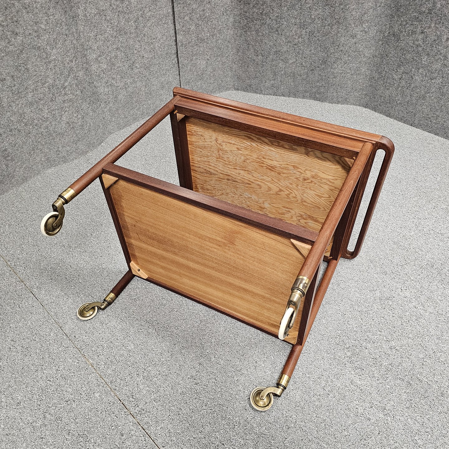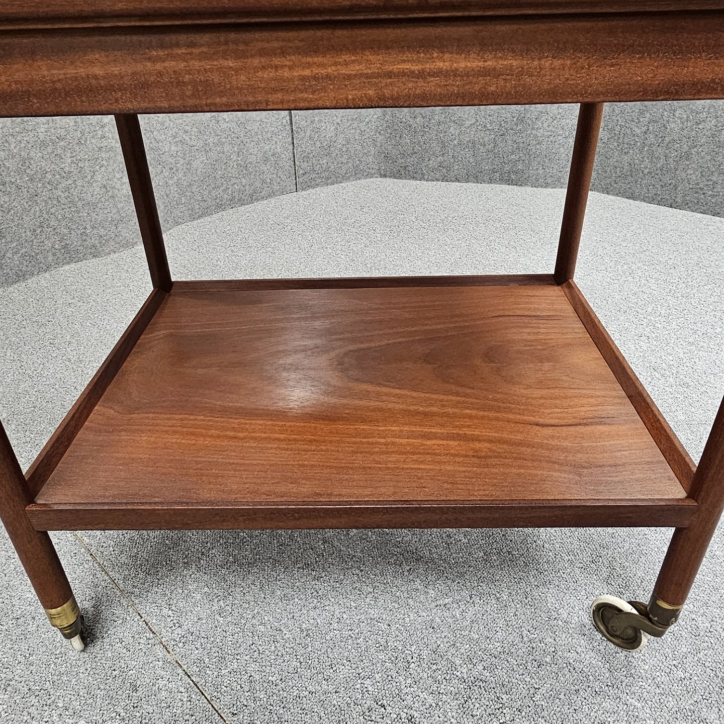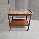 Beskrivelse: Rullebord i teak dekoreret med kakler i grønlige nuancer