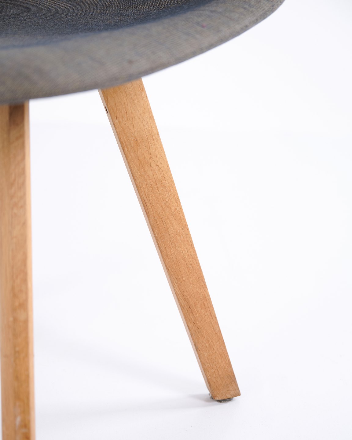 Beskrivelse: Eyes Wood stol fra Erik Jørgensen, udført med mellemgrå polstring og ben i massivt træ. En moderne spisebordsstol med god siddekomfort og høj materialekvalitet.