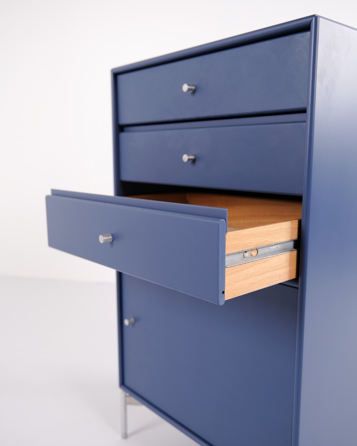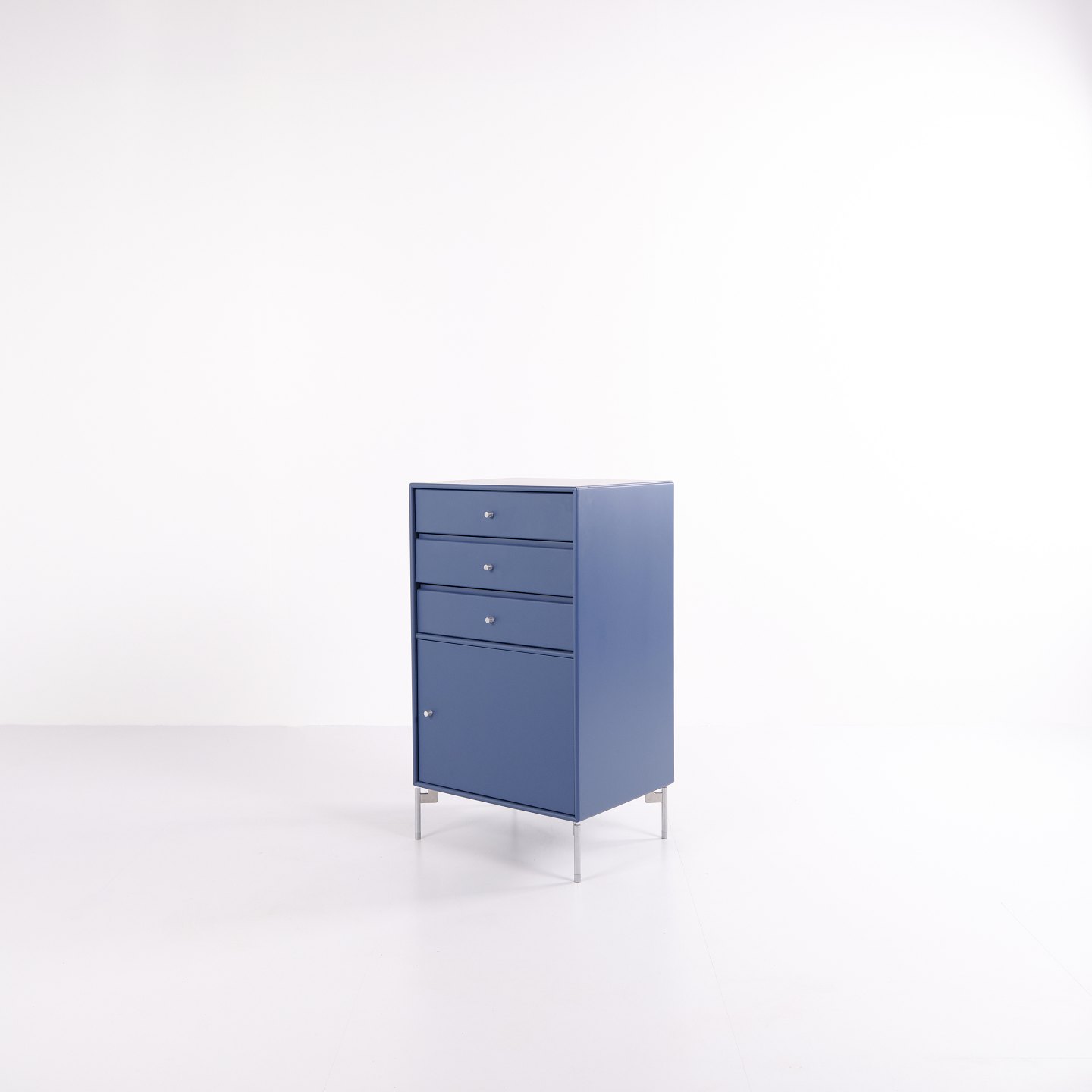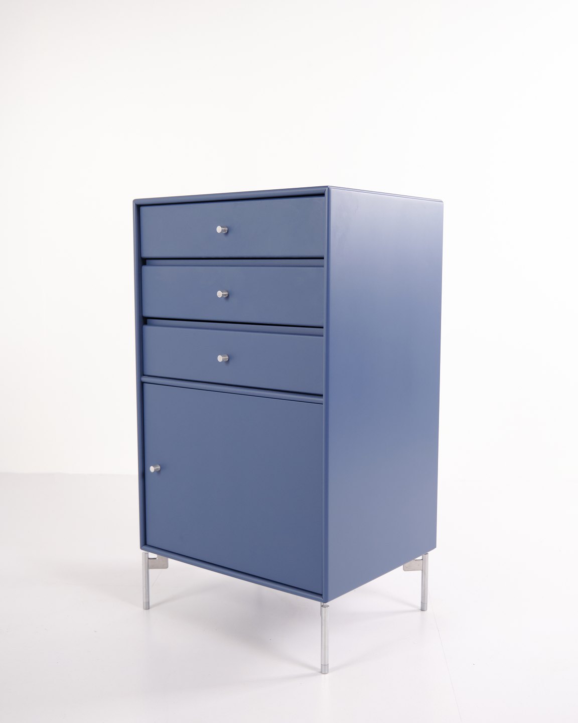 Skab / arkivskab – Montana – Blå – Krom ben – 3 skuffer & 1 låge