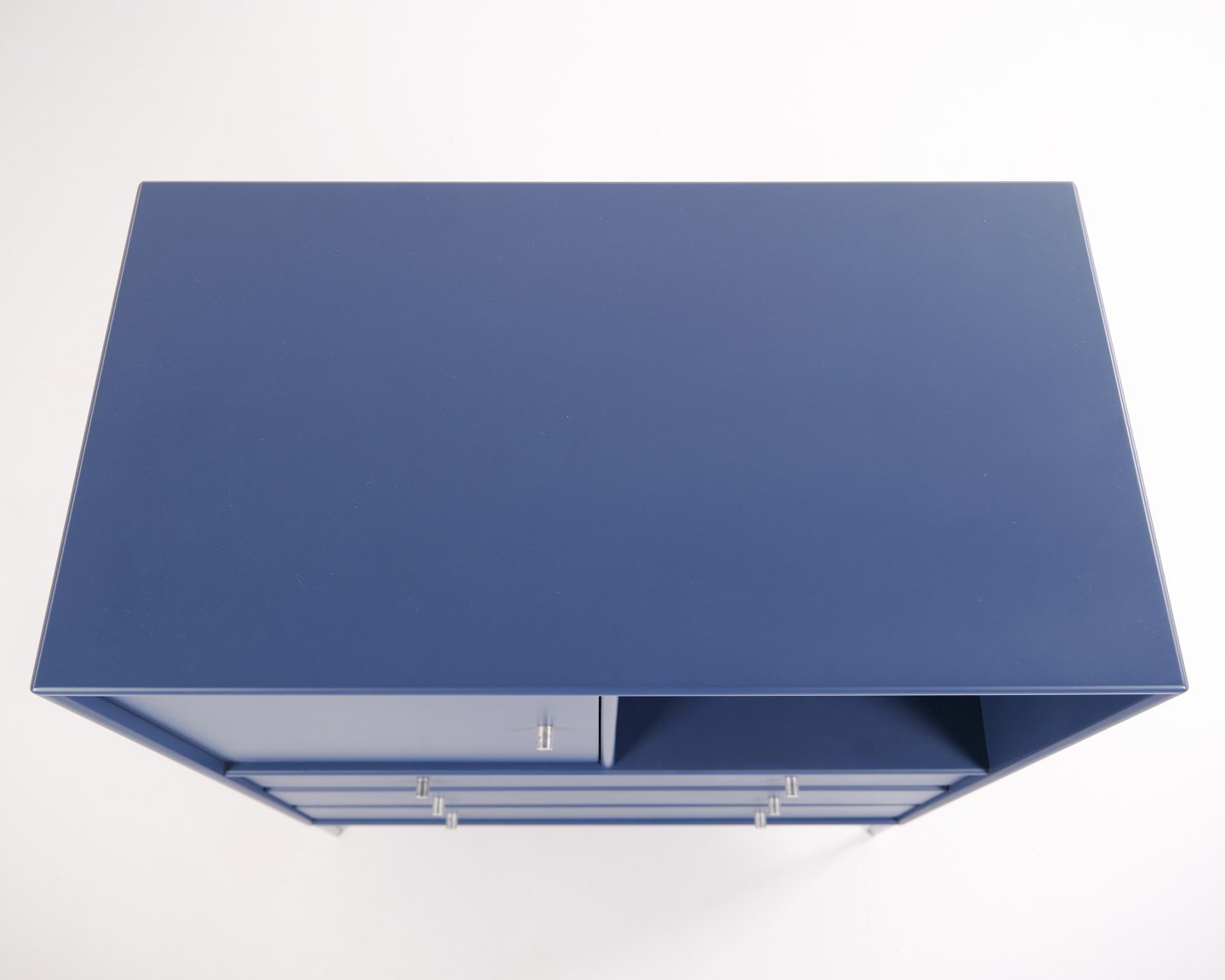 Montana kommode – Blå – Krom ben – 3 skuffer & 1 låge