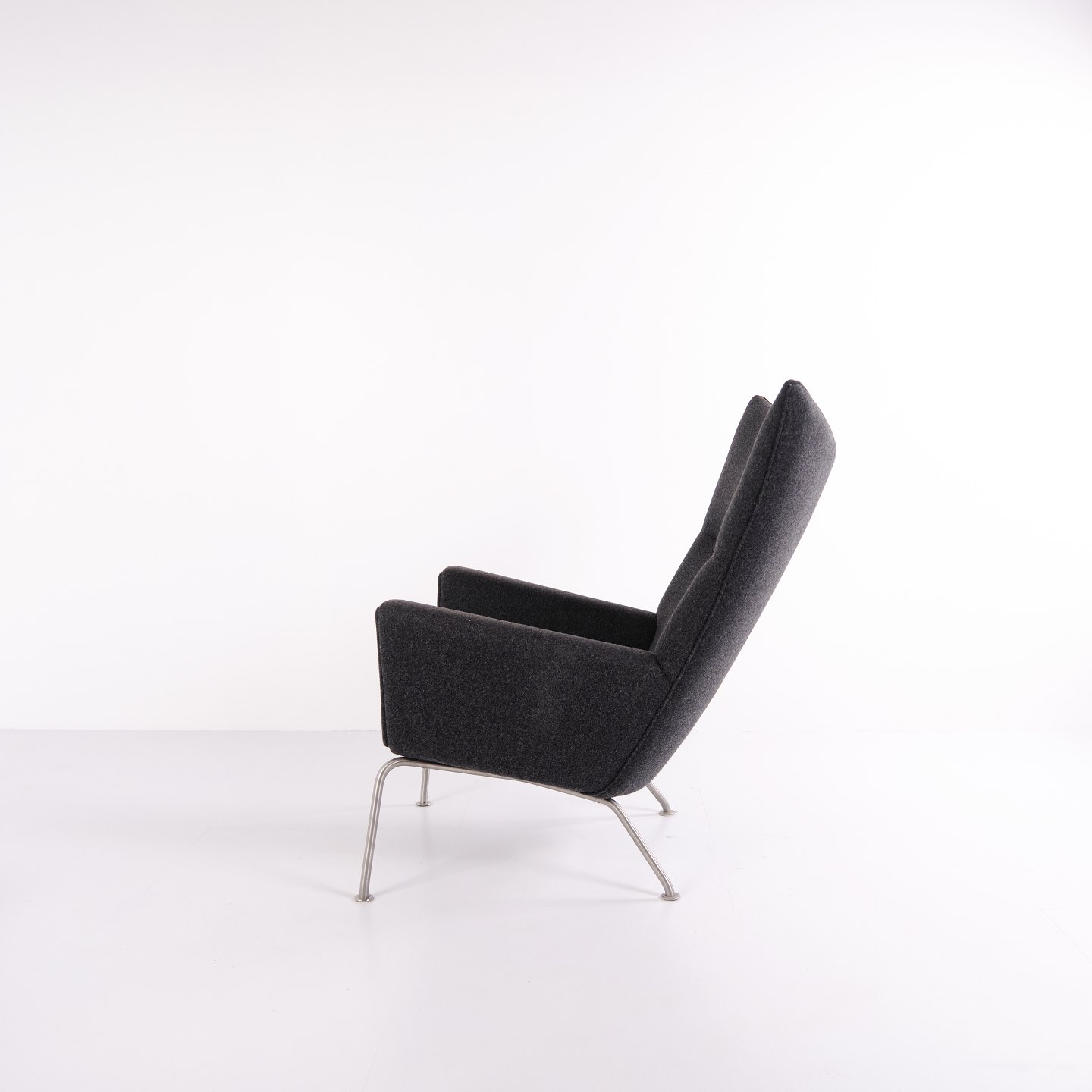 Wingchair – Hans J. Wegner – Model CH445 – Carl Hansen & Søn – Gråt Hallingdal – Med skammel
