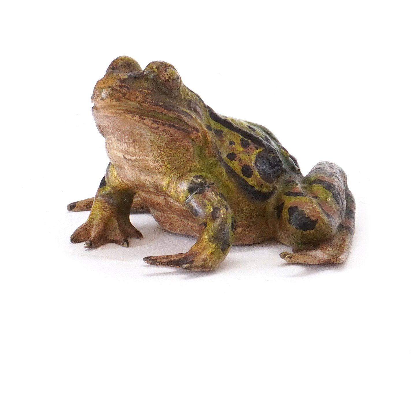Beskrivelse: Polykrom dekoreret wiener bronze i form af en frø