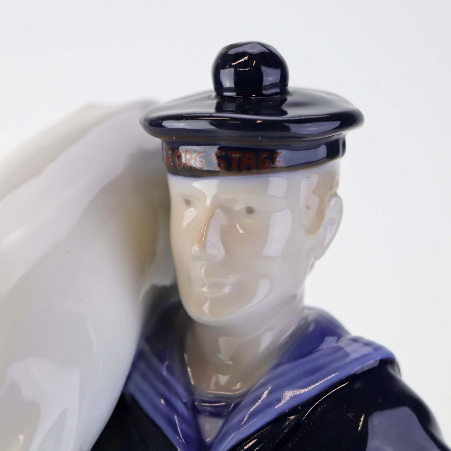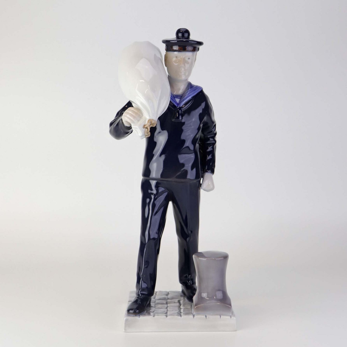Beskrivelse: Figur i porcelæn med motiv af Matros med vadsæk fra skibet George Stage. Nr. 2456
