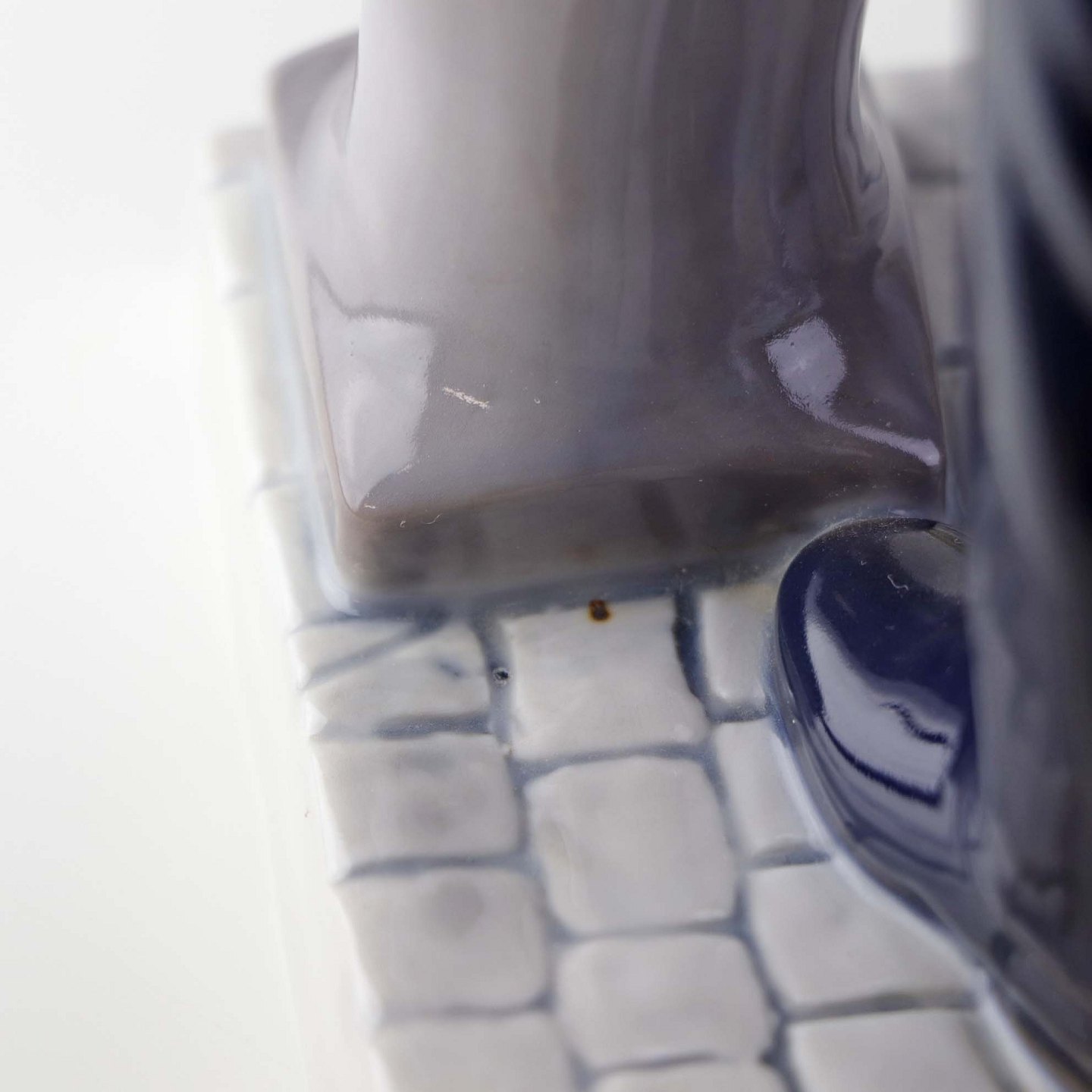 Fremstår med mindre mørk plet under glasuren ved foden.