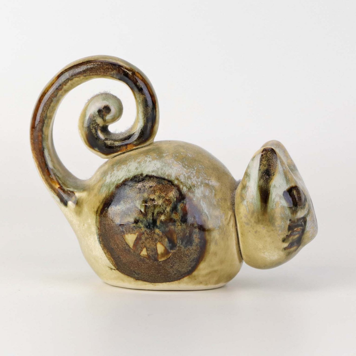 Beskrivelse: Figur i glaseret keramik med motiv af en mus
