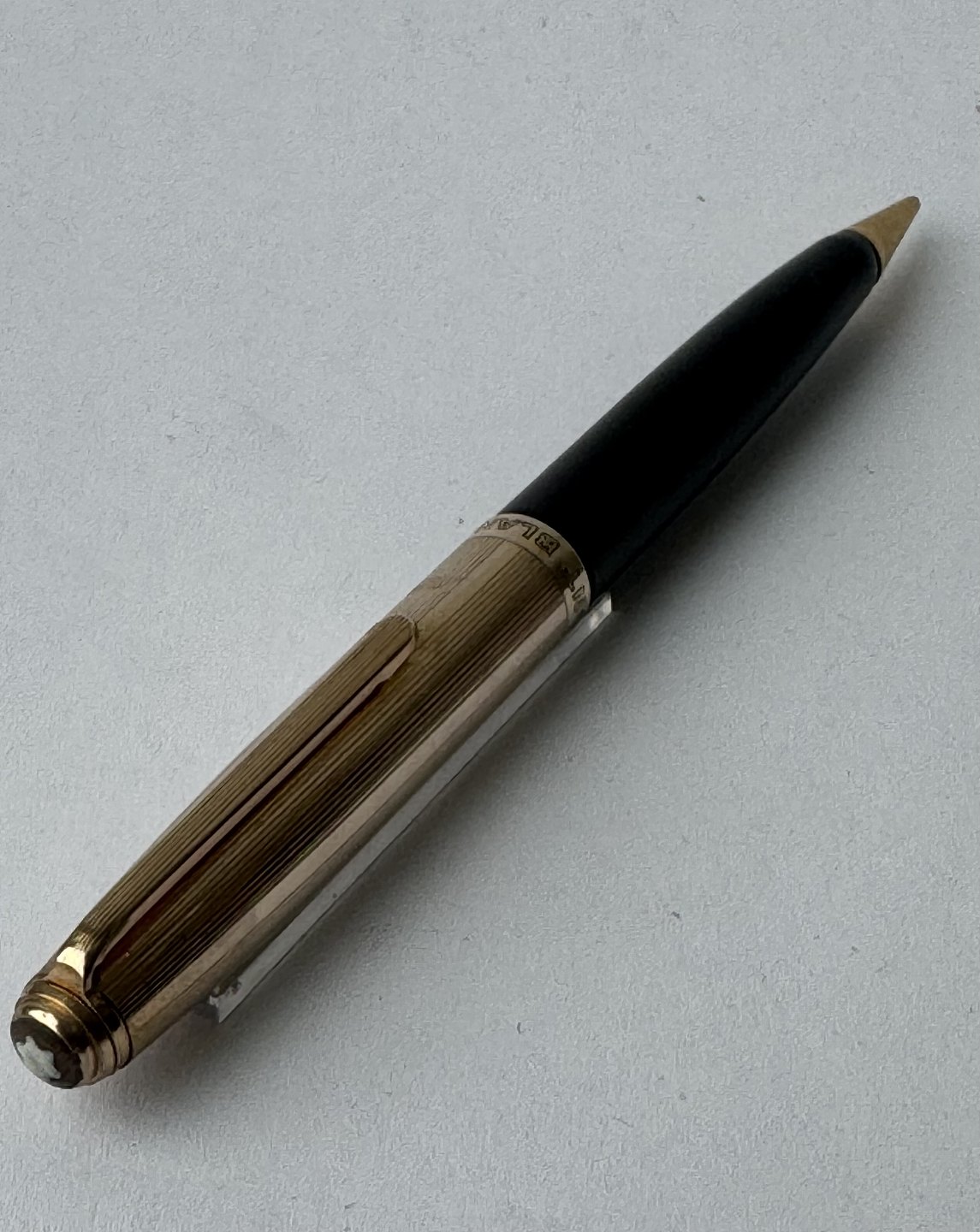 Description: Black Montblanc pencil with gold double top. In very good condition. Ready to be used.L. 12,4 cm