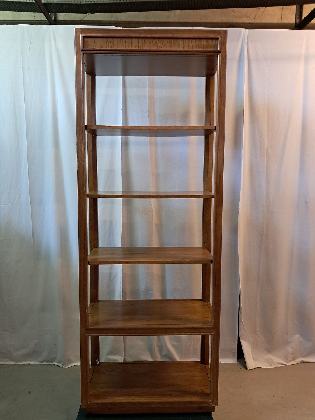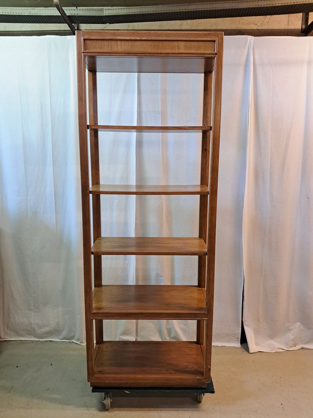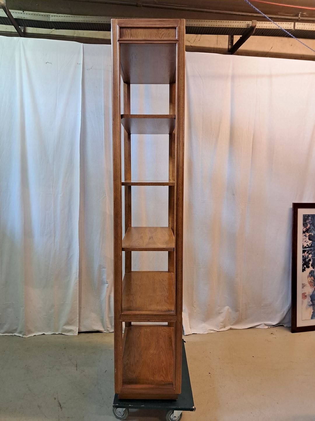 Beskrivelse: Amerikansk reol i fineret egetræ, fra 1990erne.