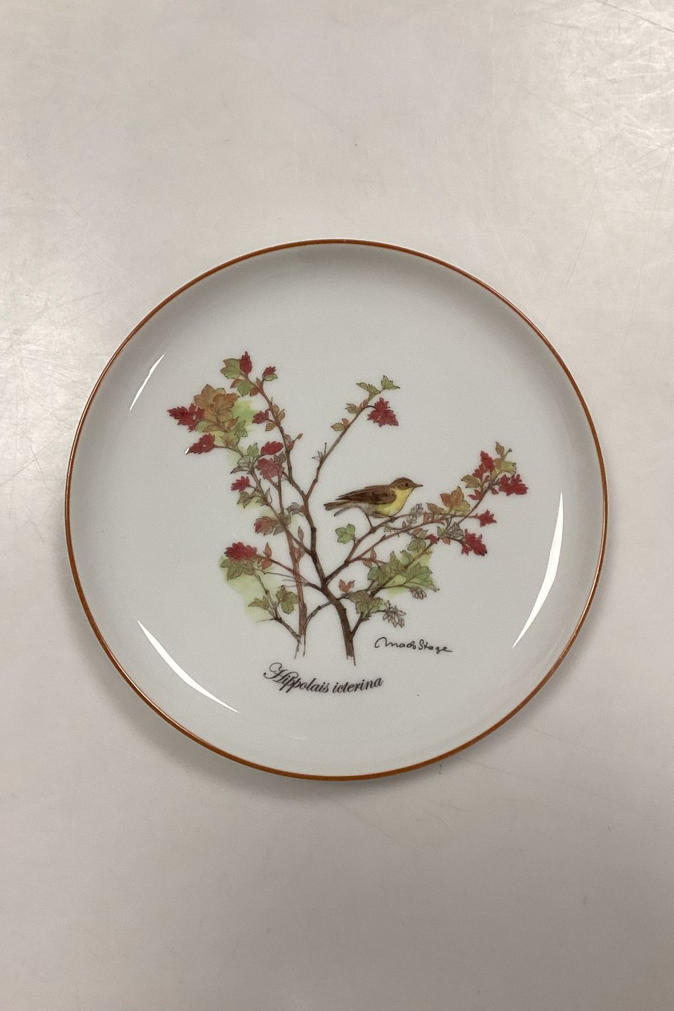 Beskrivelse: Mads Stage Årstallerken - Gulbug 2015. Latin: Hippolais icterina. Producent: Seltmann Weiden.