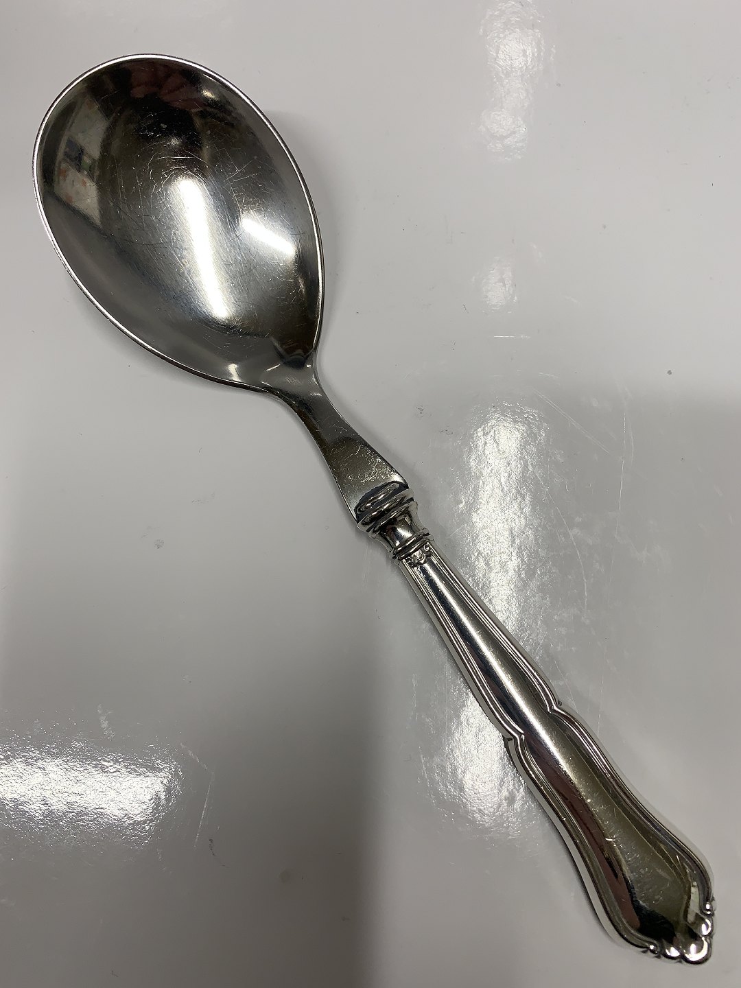 Description: Rita Silver Serving Spoon with Stainless Steel Handle