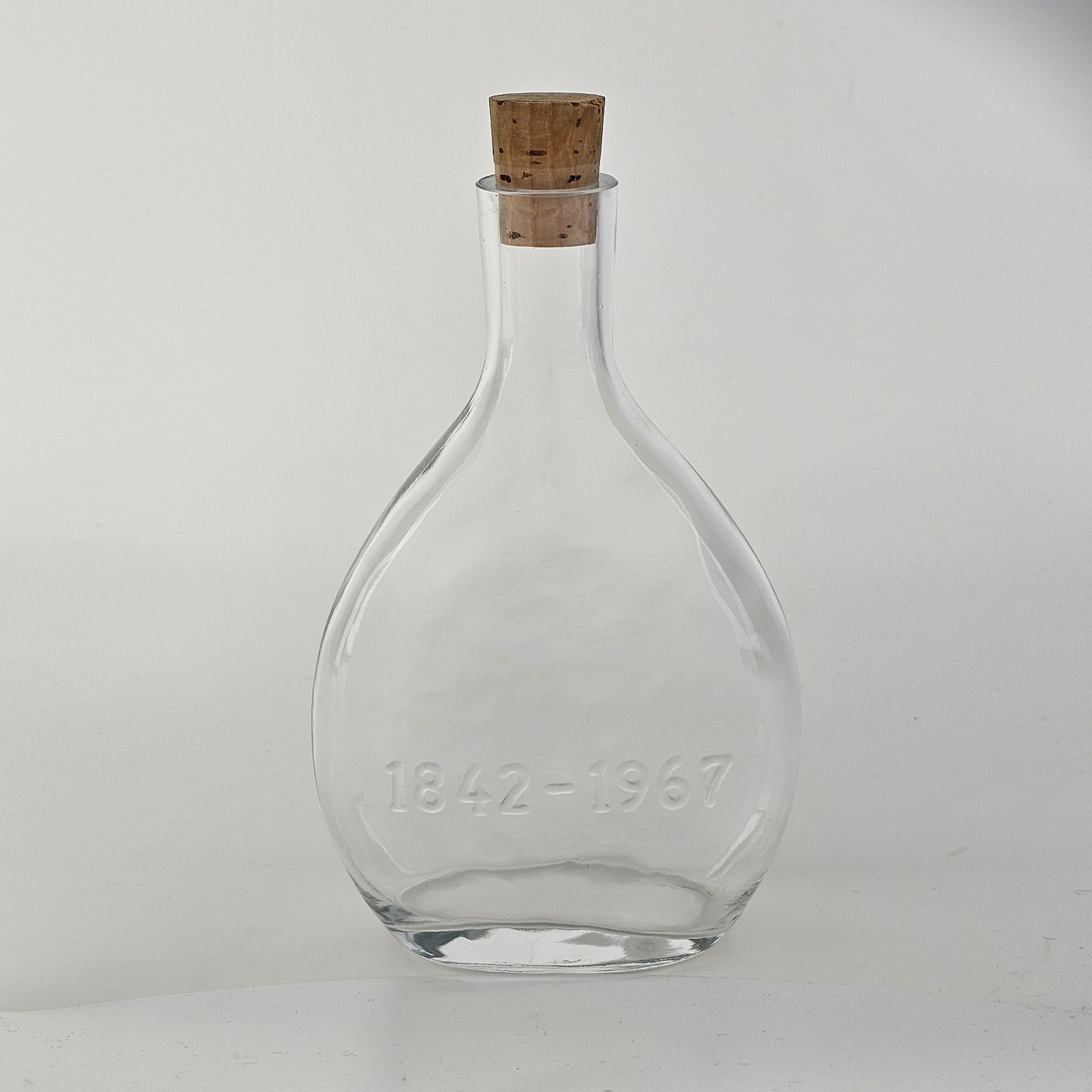 Beskrivelse: Brændevinsflaske med korkprop og teksten 1842-1967