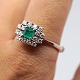 C. Antonsen; Ring i 14 kt. hvidguld prydet med diamanter og smaragd