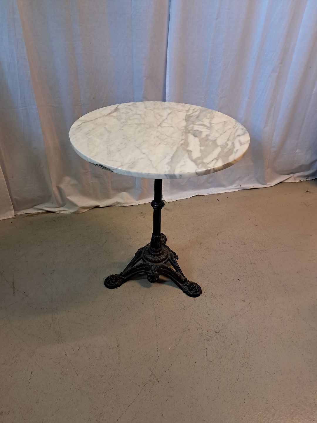 : Bord i malet metal med marmorplade, fra 1990erne.