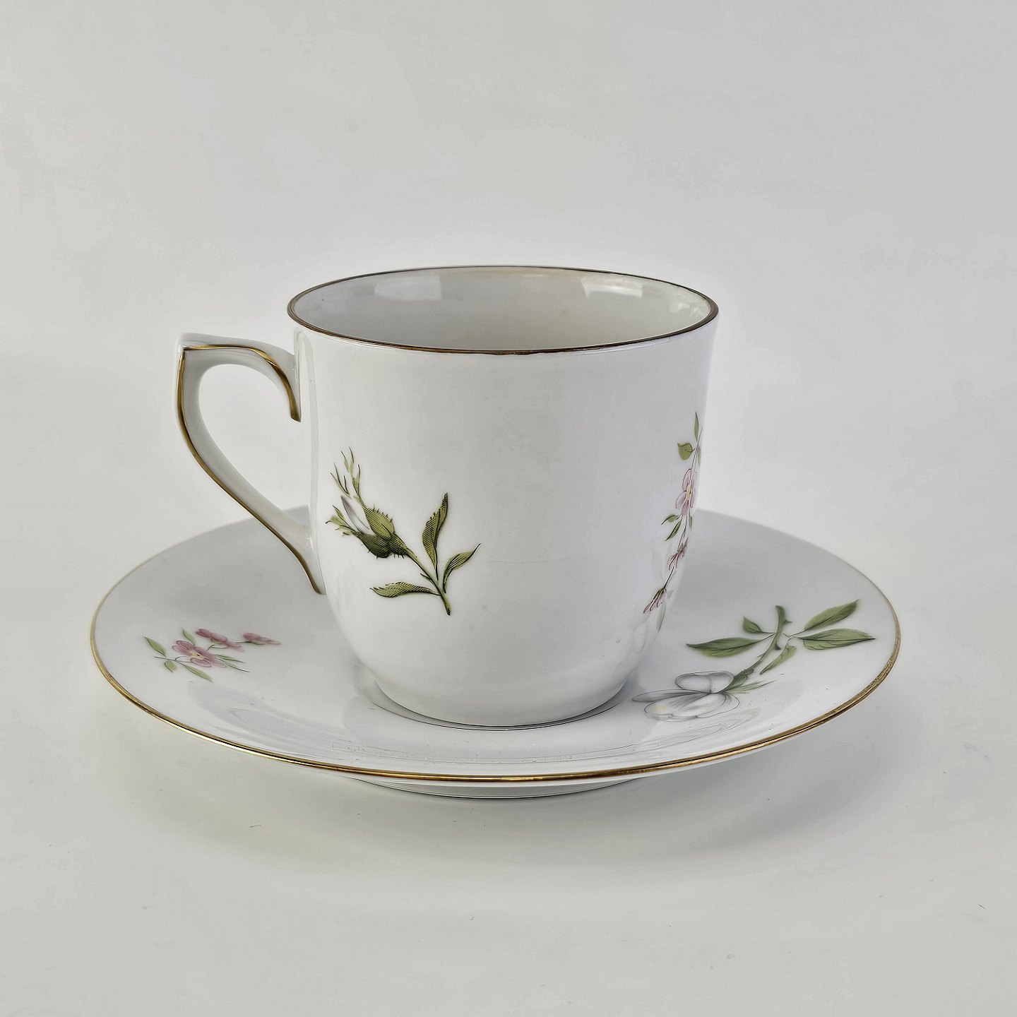 Paris er porcelæn med guldkant og motiv af hvide roser og violer