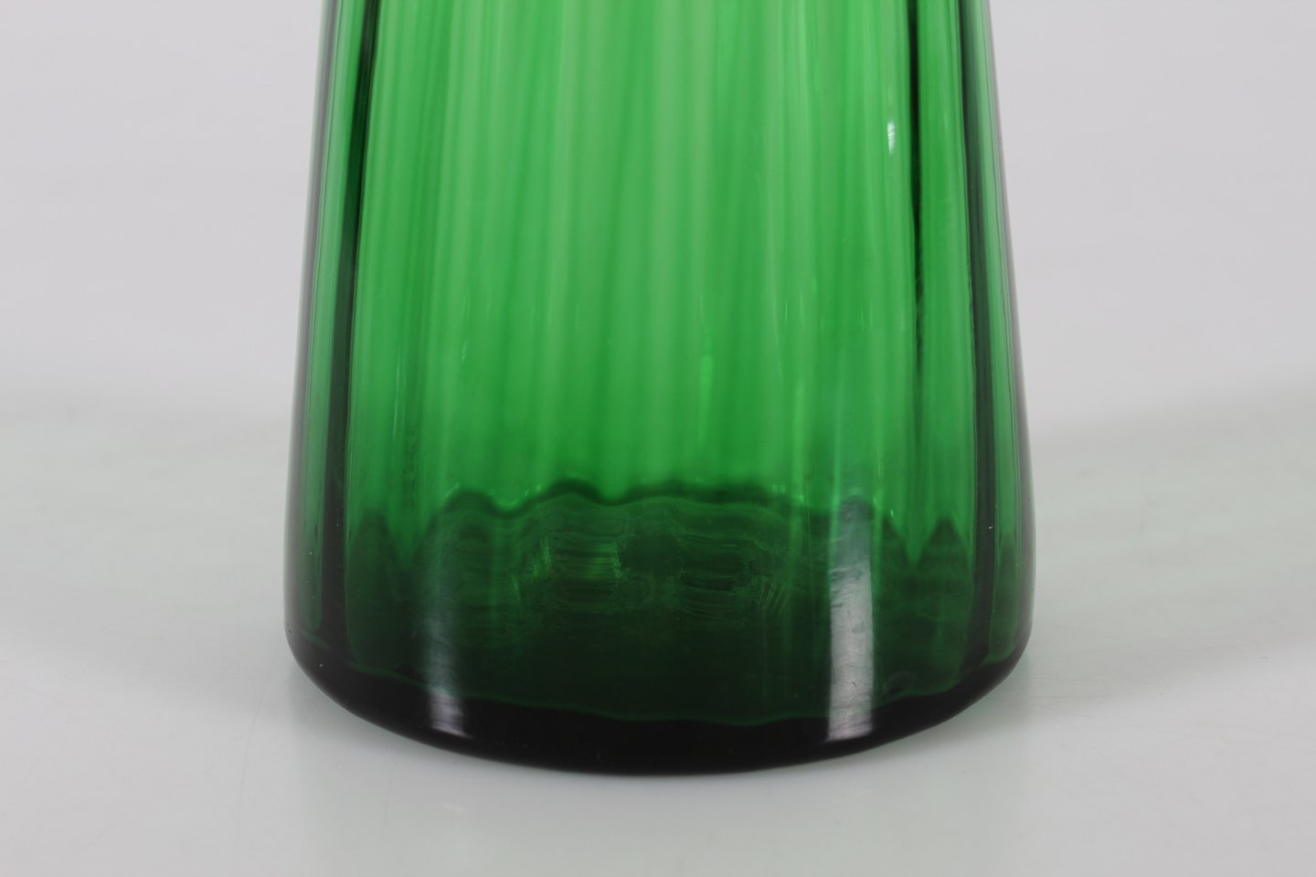 Gammel dansk grønt hyacintglas i let vreden form