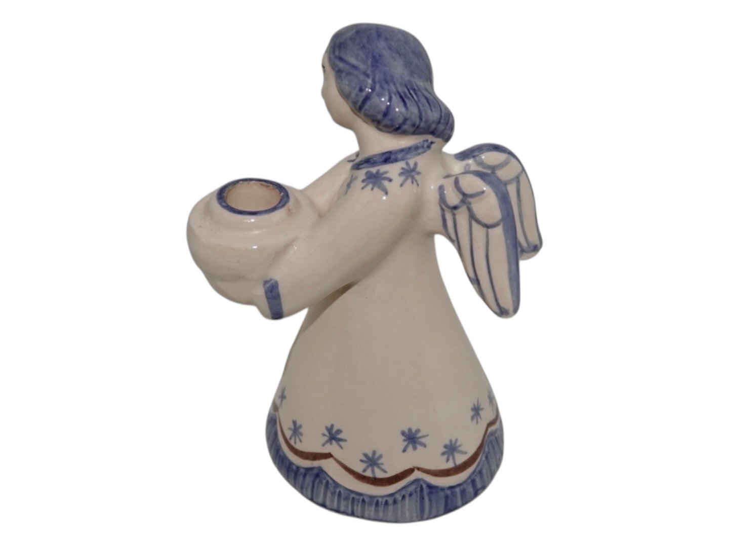 Beskrivelse: Hjorth Keramik, engel figur / lysestage med cremehvid og blå dekoration.