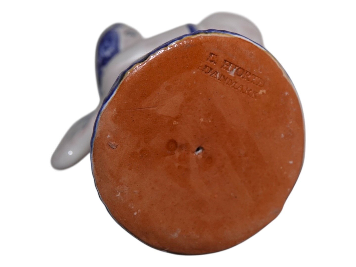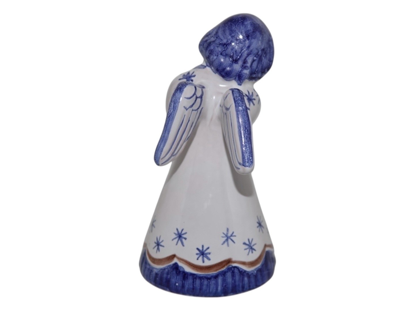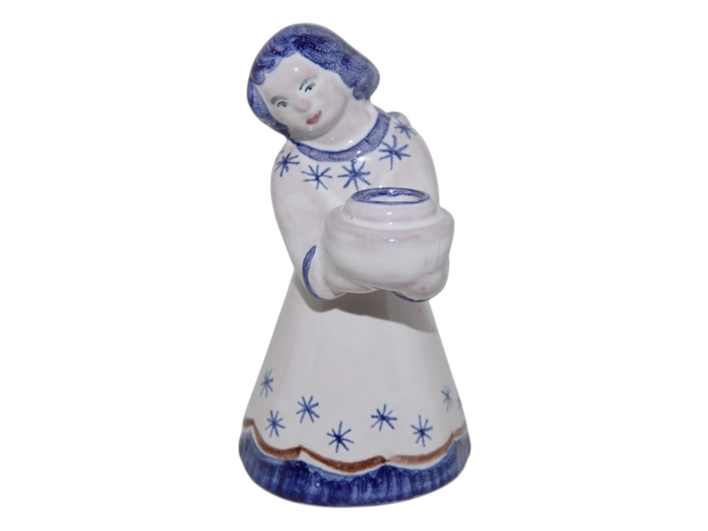 Beskrivelse: Hjorth Keramik, engel figur / lysestage med hvid og blå dekoration.