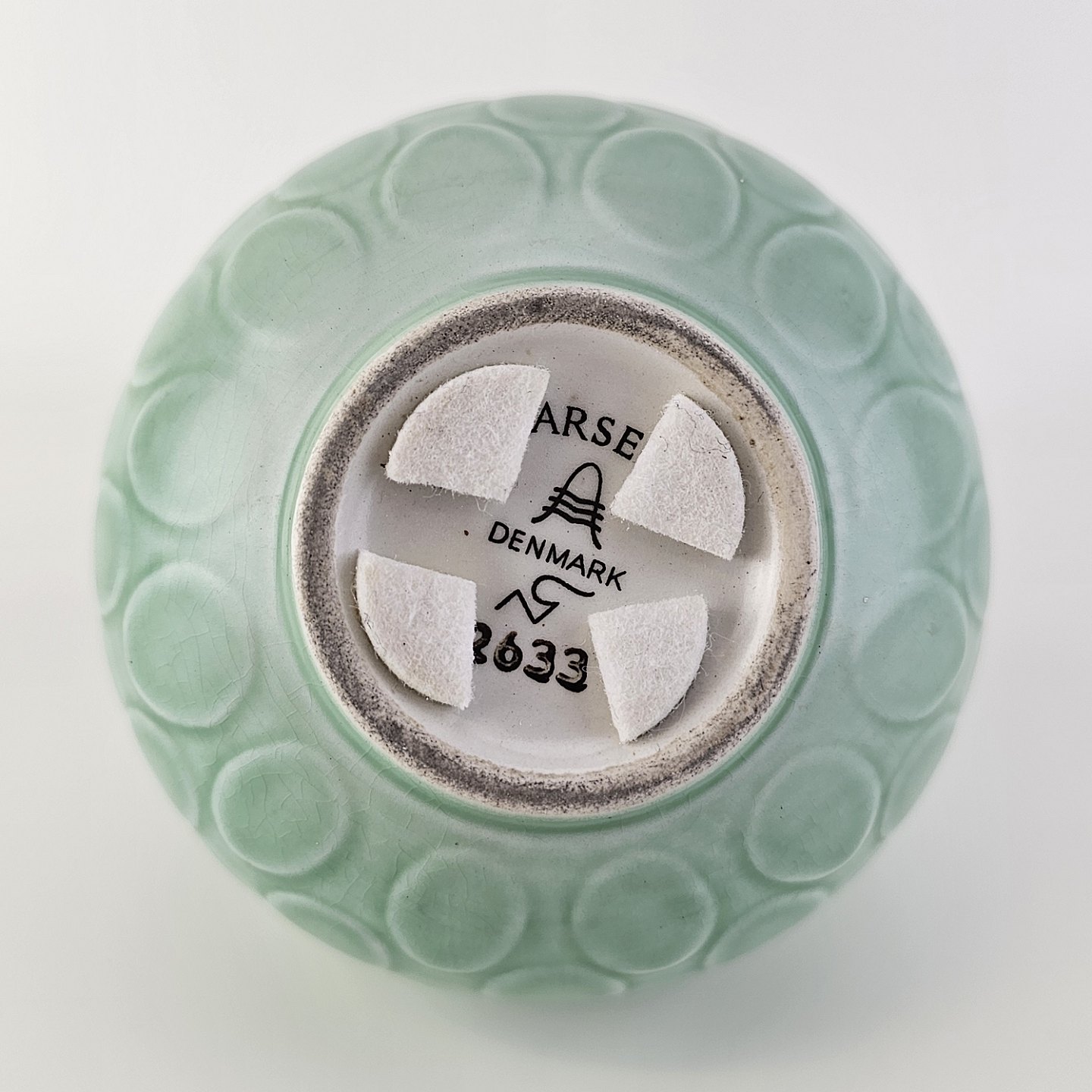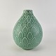 Beskrivelse: Vase i mintgrøn fajance med dråbemønster