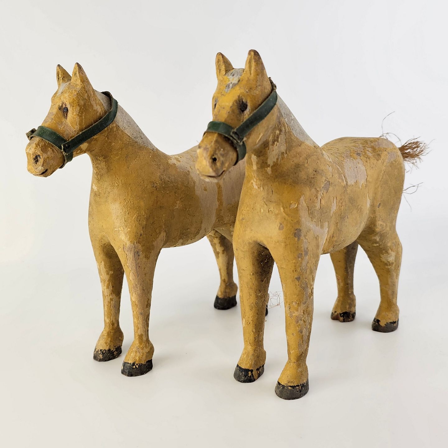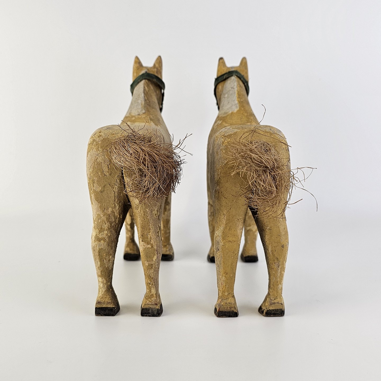 Beskrivelse: Sæt af to figurer i træ med motiv af heste, formentlig fremstillet som fængselsarbejde. Sælges samlet