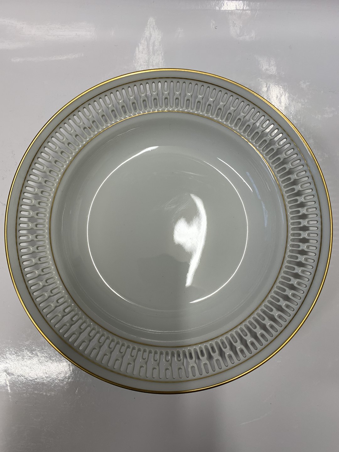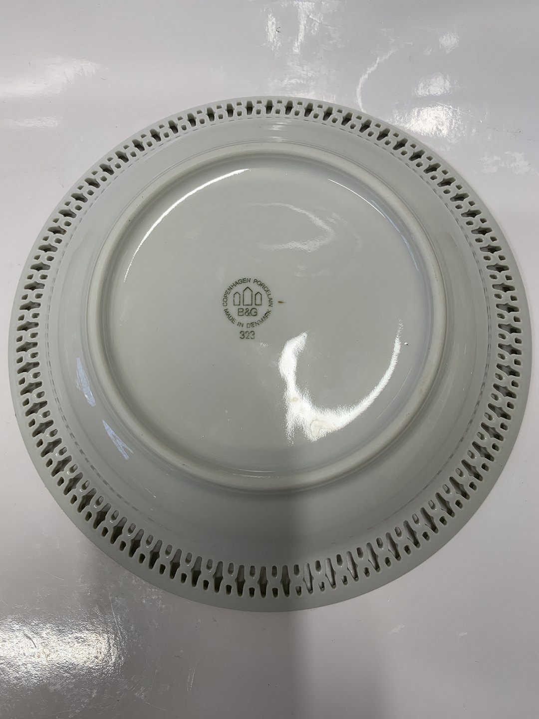 Description: Bing & Grondahl, Haga, Deep plate with gold and openwork edge.