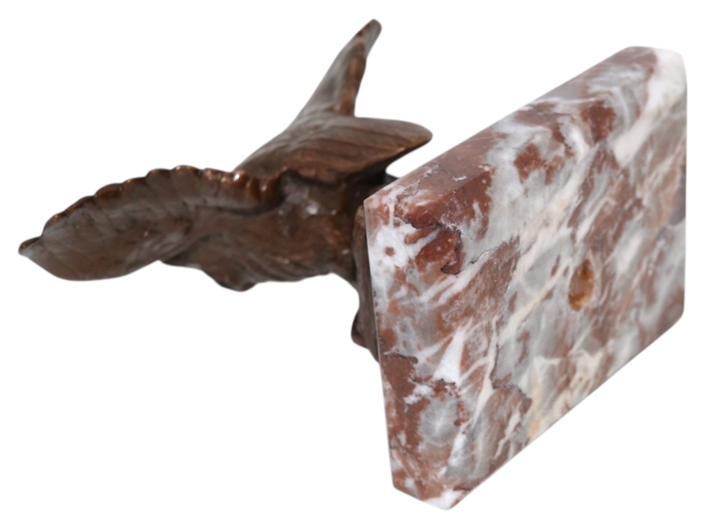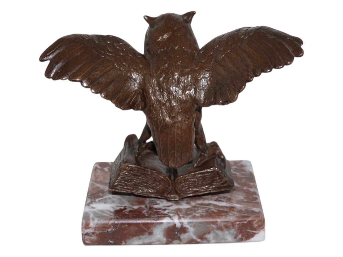 Beskrivelse: Bronze figur af ugle på marmorbase.