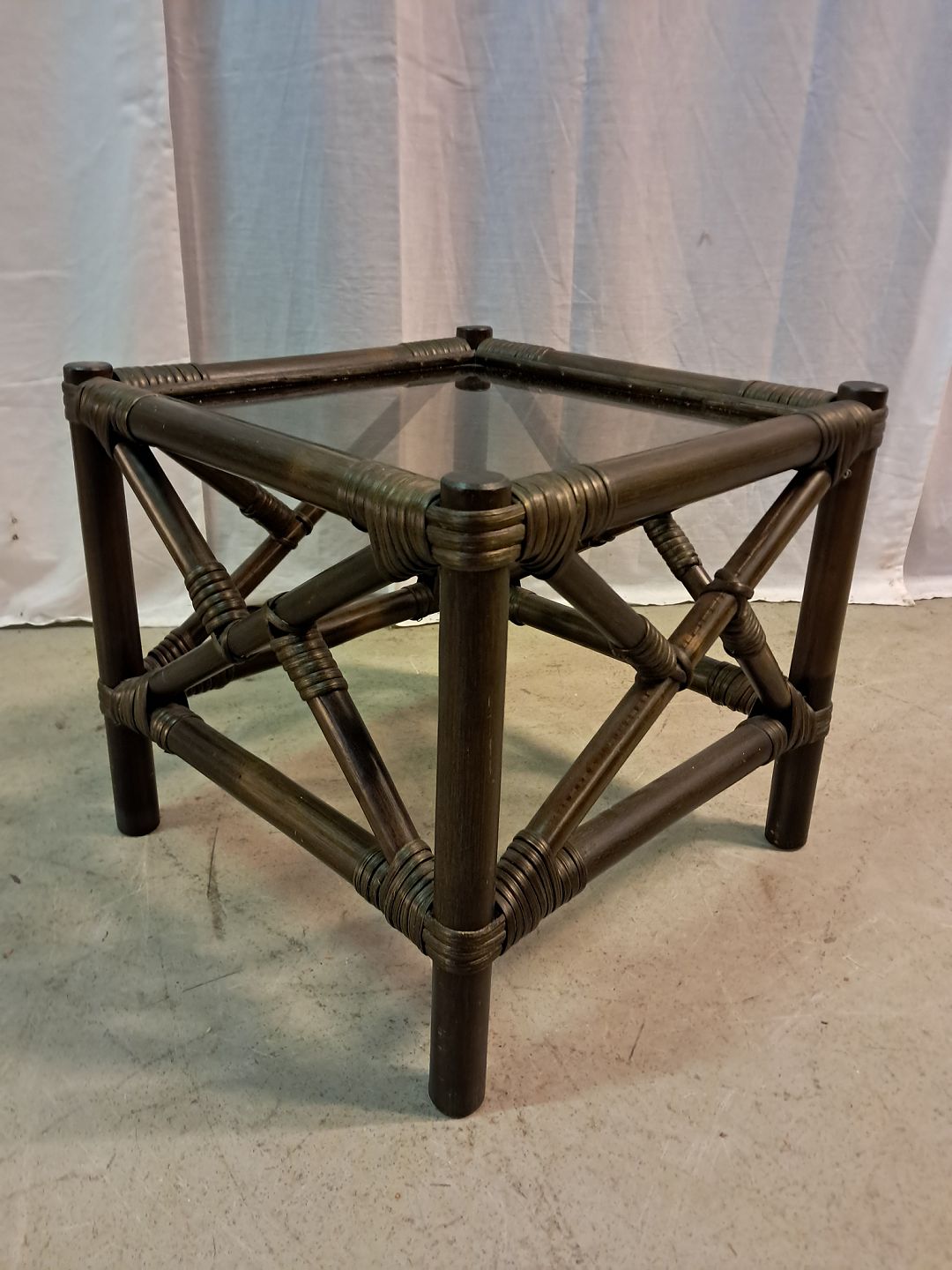 : Lille bord i bambus med glasplade, fra 2000erne.