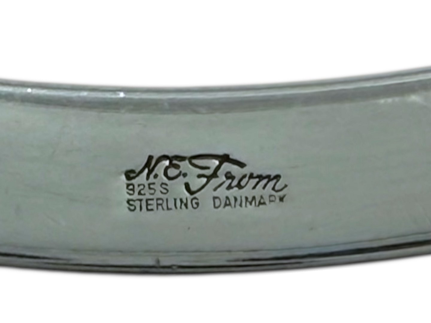 Stemplet "N.E. FROM 925S STERLING DENMARK". N.E. From var sølvsmed i Randers og Nakskov fra 1944 og efter hans død i 1986 fortsatte selskabet med at lave smykker frem til 2009. Smykker fra N.E. From er kendt for deres høje kvalitet. Dette er fra ca. 1950 til 1960.