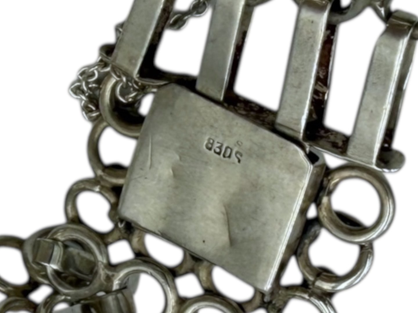Beskrivelse: Bredt og tungt sølv armbånd fra ca. 1970.