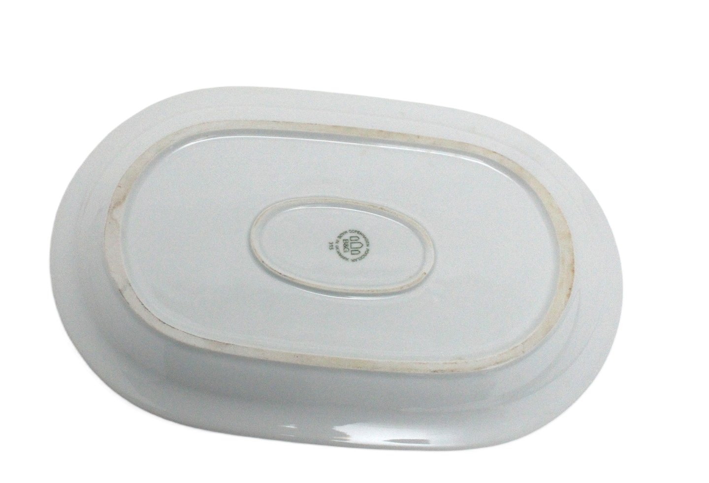 Beskrivelse: Bing & Grøndahl, Serveringsfad. Nr. 315. Designet af Martin Hunt. Længde 36 cm. Bredde 23 cm. II sortering. Almindelig brugsslid, brugsstreger. Pris: 400 kr. stk. Lager: 1