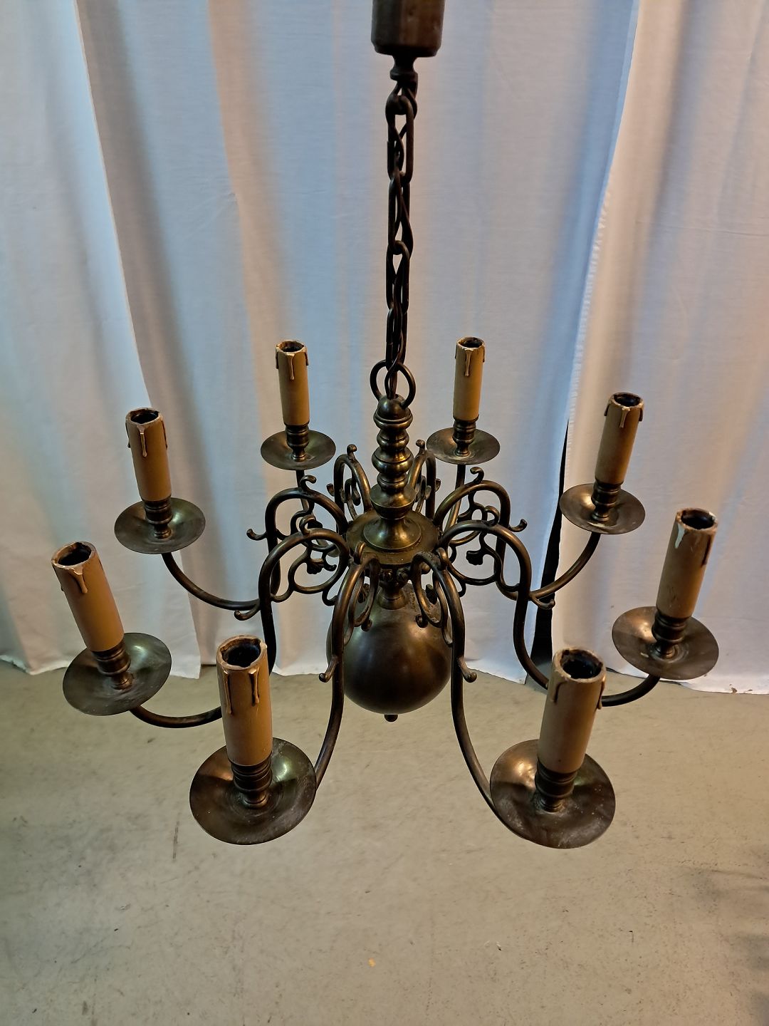 Beskrivelse: 8-armet kirkekrone i bruneret messing, fra 1930erne.