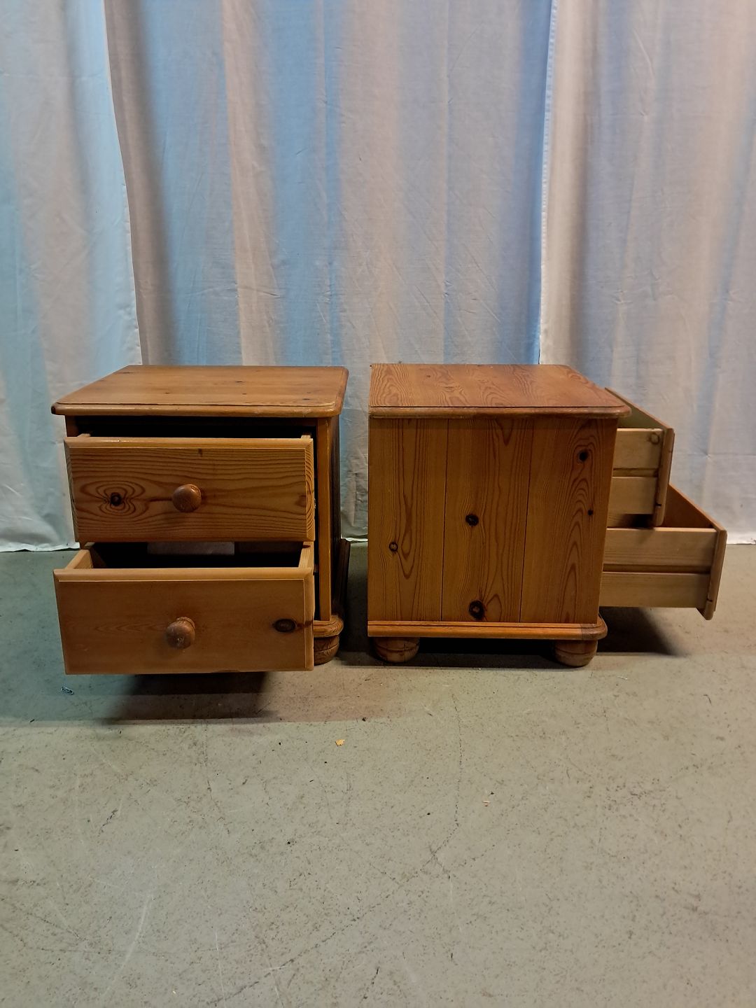 Beskrivelse: 2 Små kommoder i massivt fyrretræ, fra 1980erne.