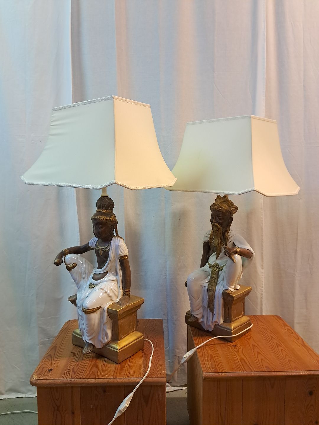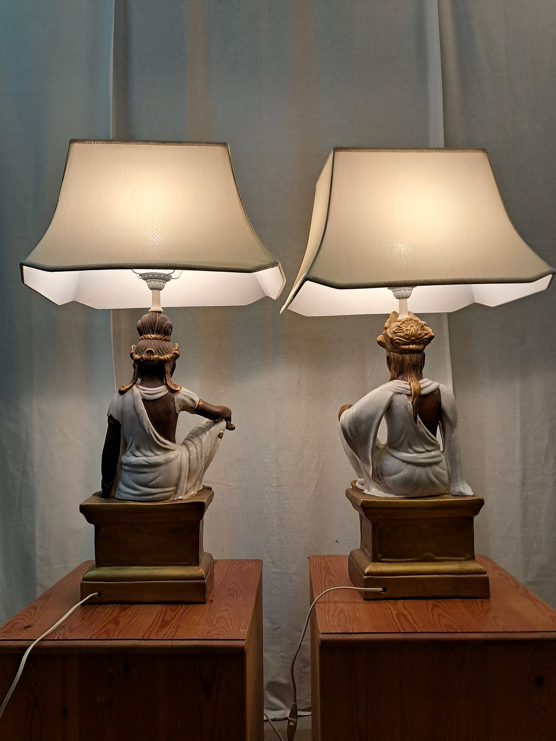 Beskrivelse: 2 Bordlamper i pocelæn med skærme, fra 2000erne.