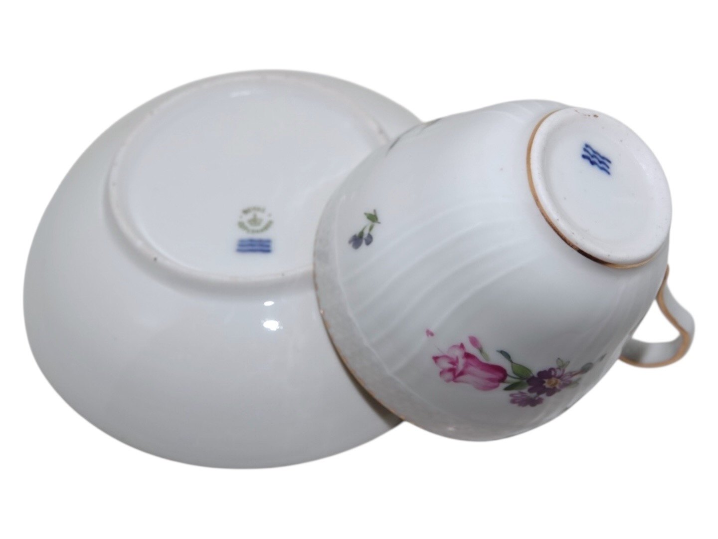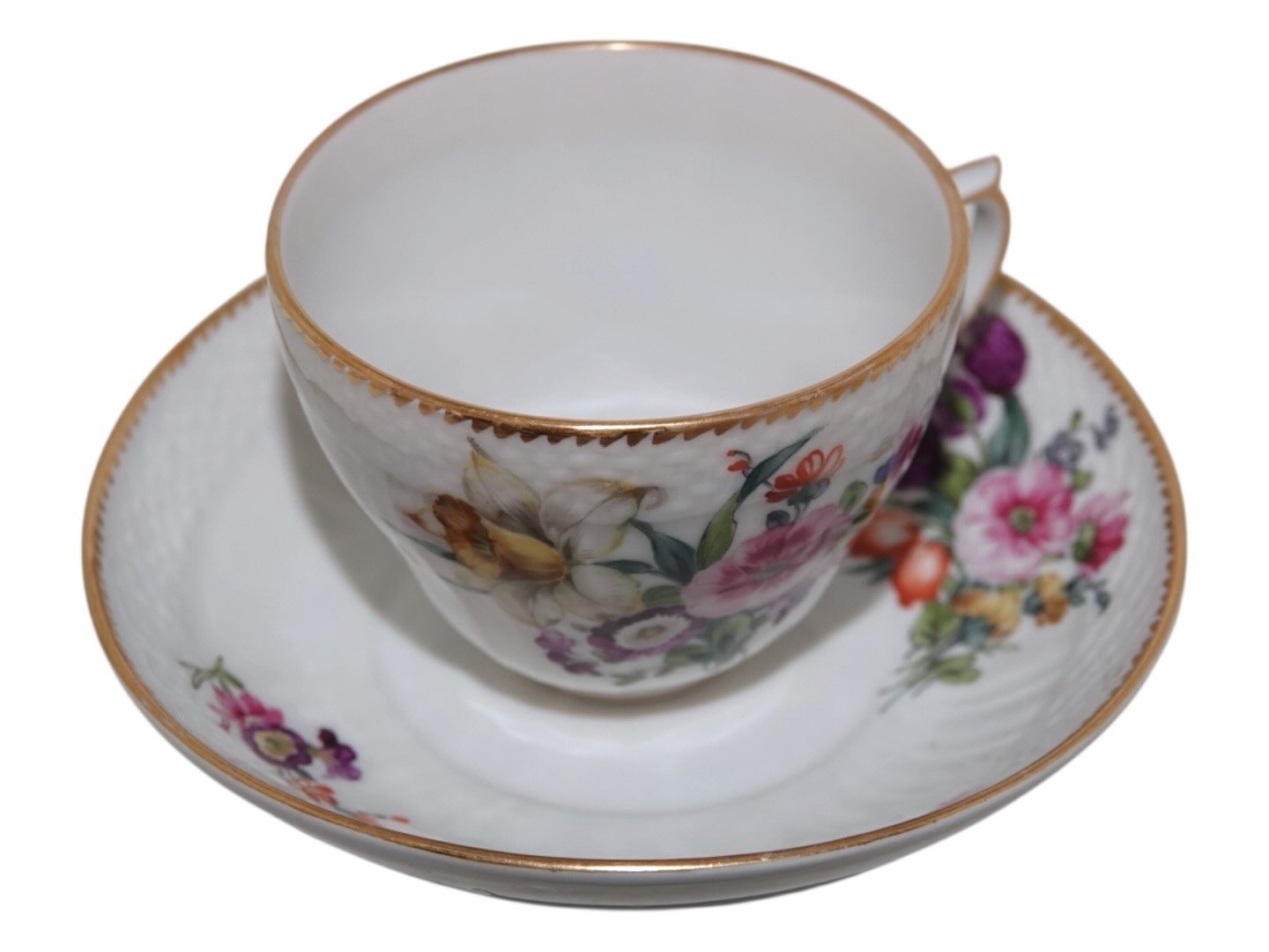 Beskrivelse: Royal Copenhagen Fuld Saksisk Blomst, stor kaffekop med tilhørende underkop.
