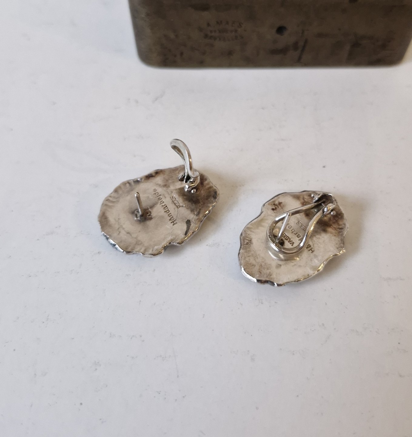Beskrivelse: Par store ørestikker i sterlingsølv med onyx af Niels Gunni Vase