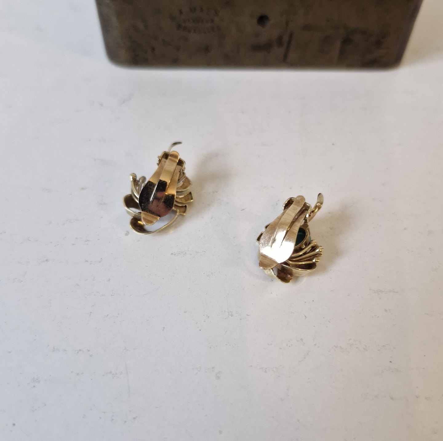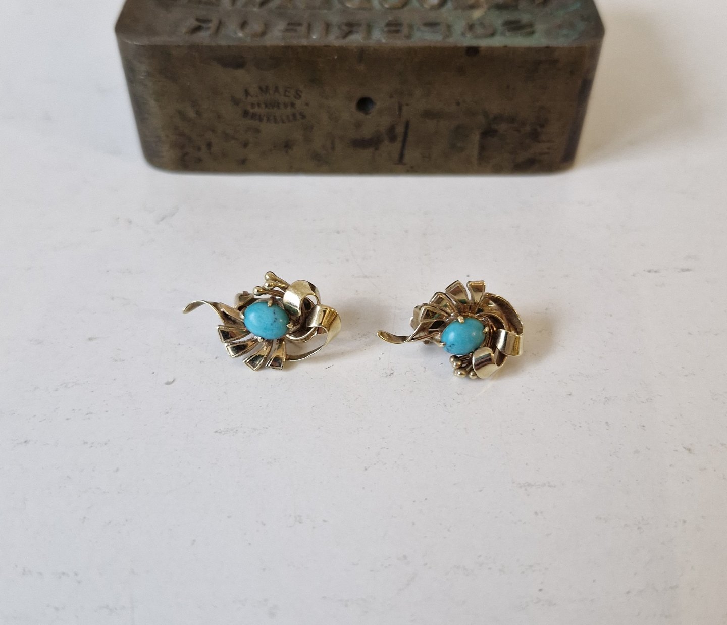 : Par smukke øreklips i 14 kt guld med turkis