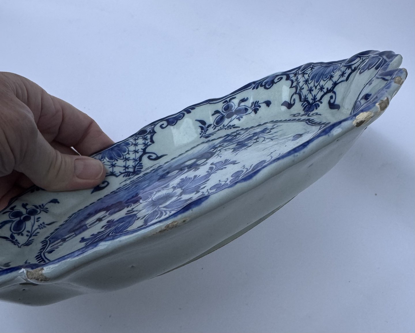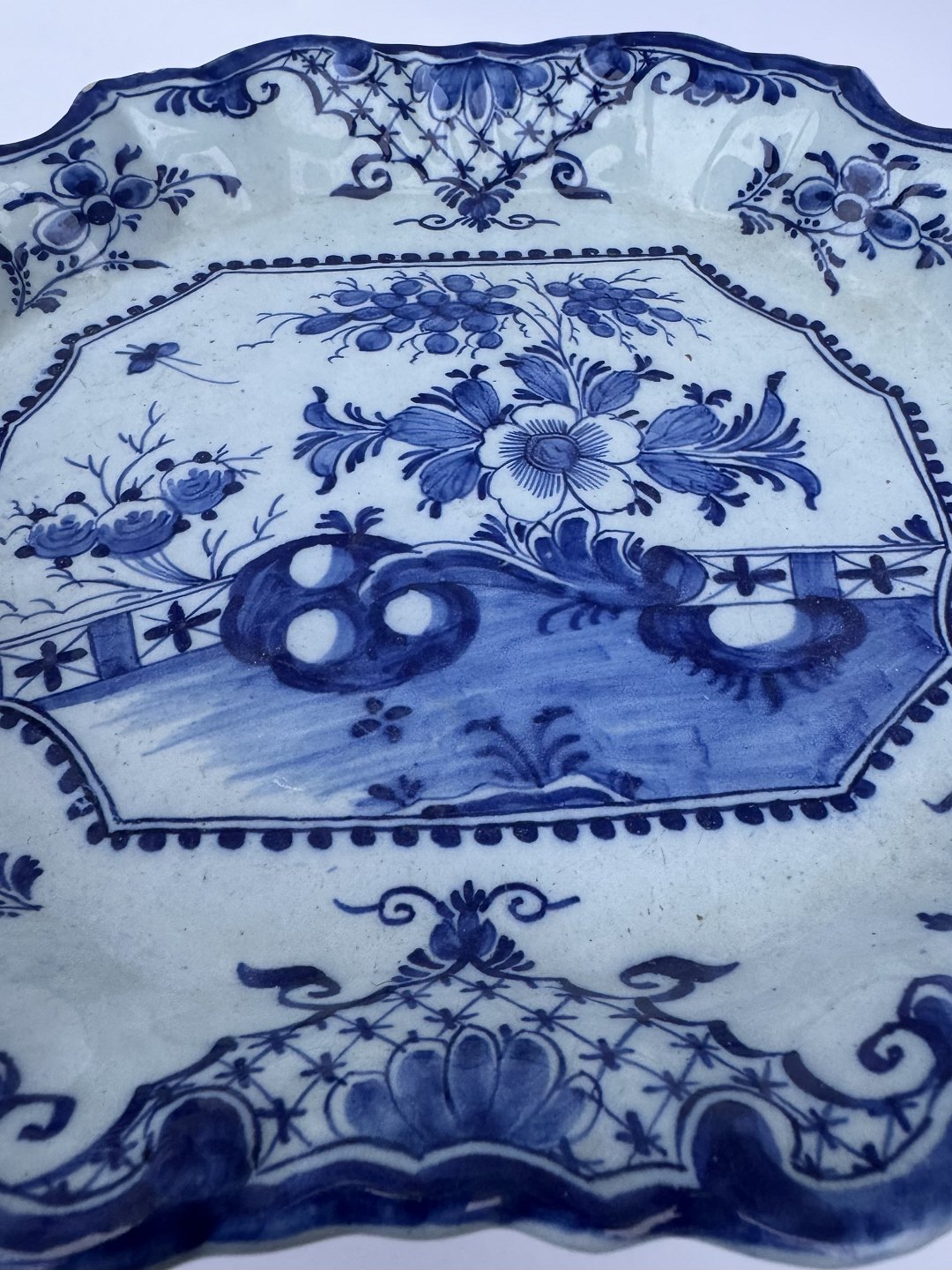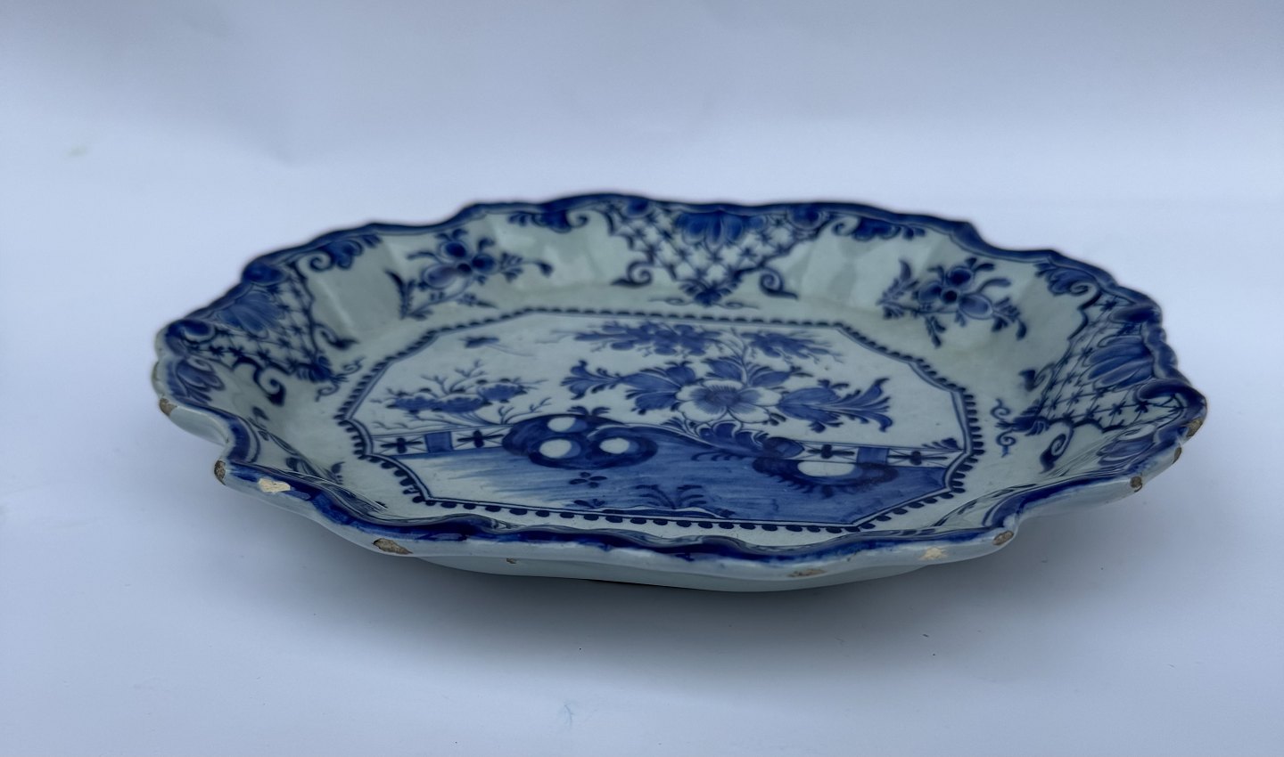 Beskrivelse: BLÅ BLOMSTER DEKORATION: Delft fajance fiskefad fra den nederlandske fabrik van Duyn fremstillet omkring 1765. Fremstår i god stand med alders relaterede brugsspor rundt på kanten i form af små overflade afslag i glasuren (se mange fotos). Der udover ingen skader eller reparationer. Fabriksmærket på bunden samt gammel label med dansk tekst. Mål:H.3,4 cm, L. 23,3 cm, D. 20,9 cm
