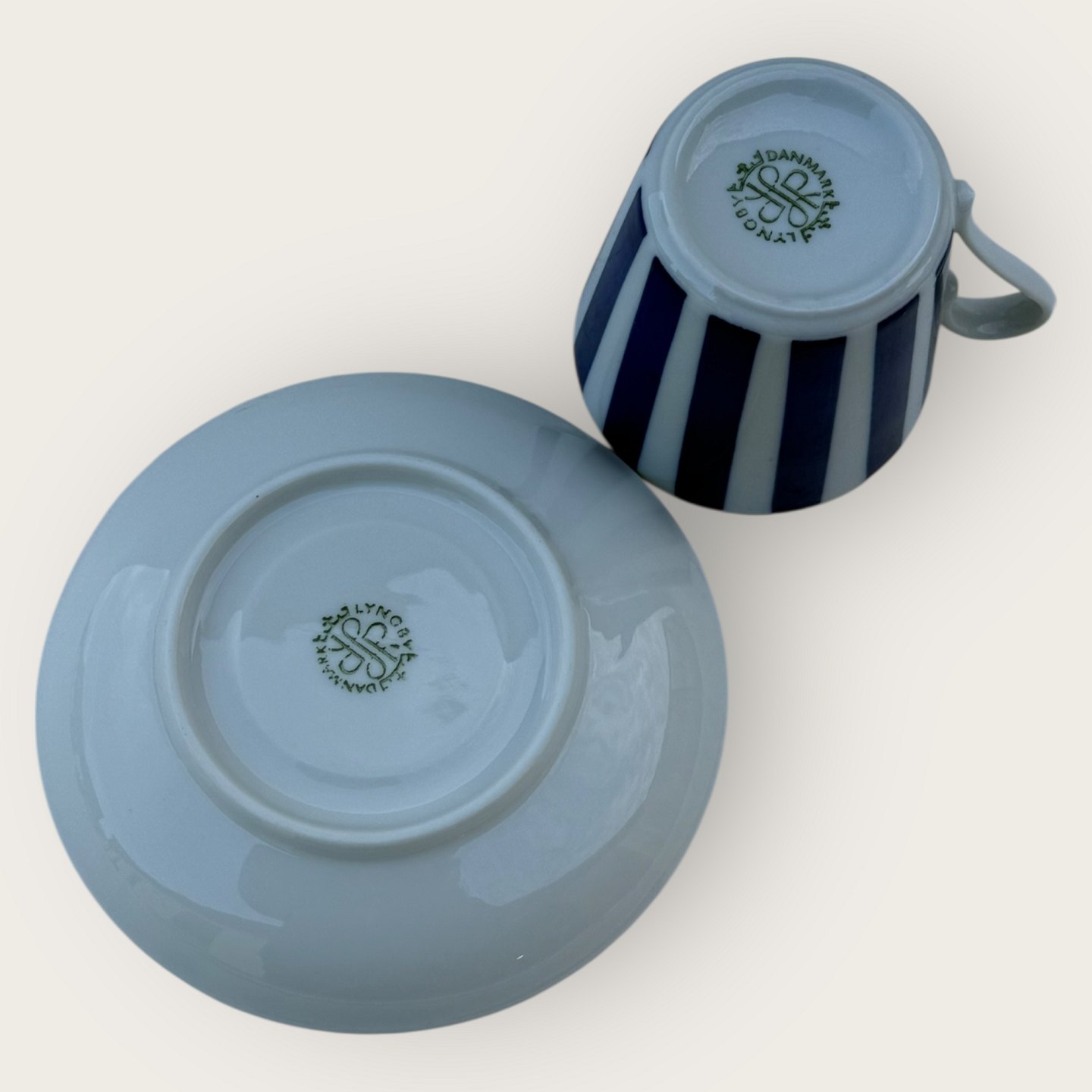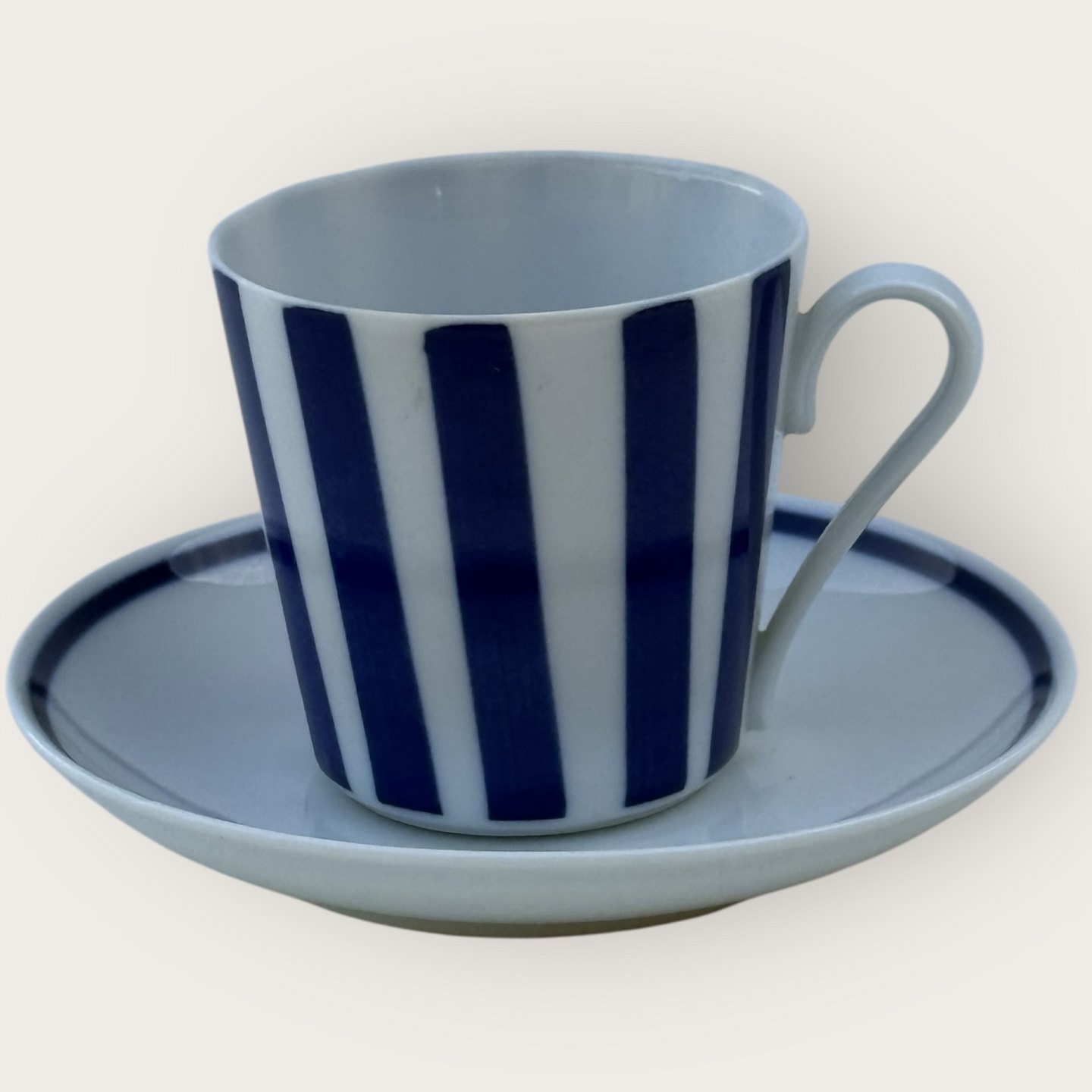 Beskrivelse: Lyngby, Danild 42, Blå stribe, Kaffekop, kop diameter 7,3cm, højde 7cm, Design Axel Brüel & Egon Mortensen *Pæn stand*