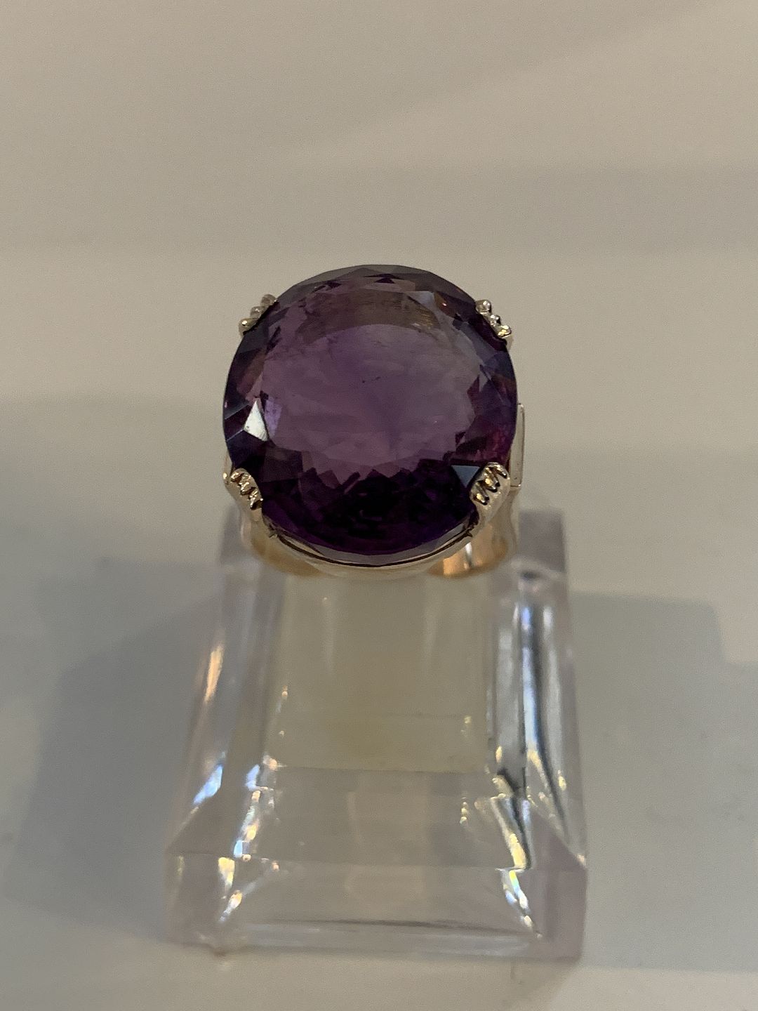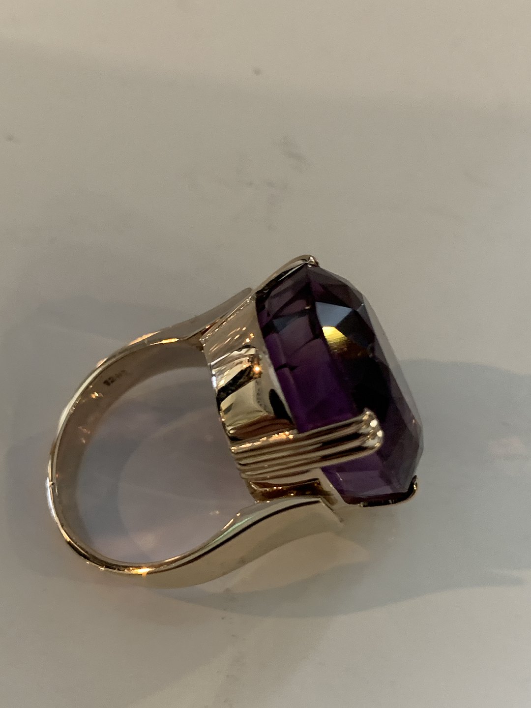 Beskrivelse: Vintage Damering med en stor ametyst 12 Karat Guld