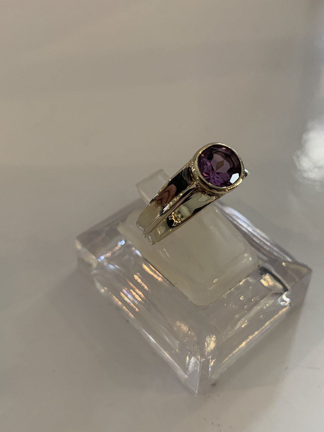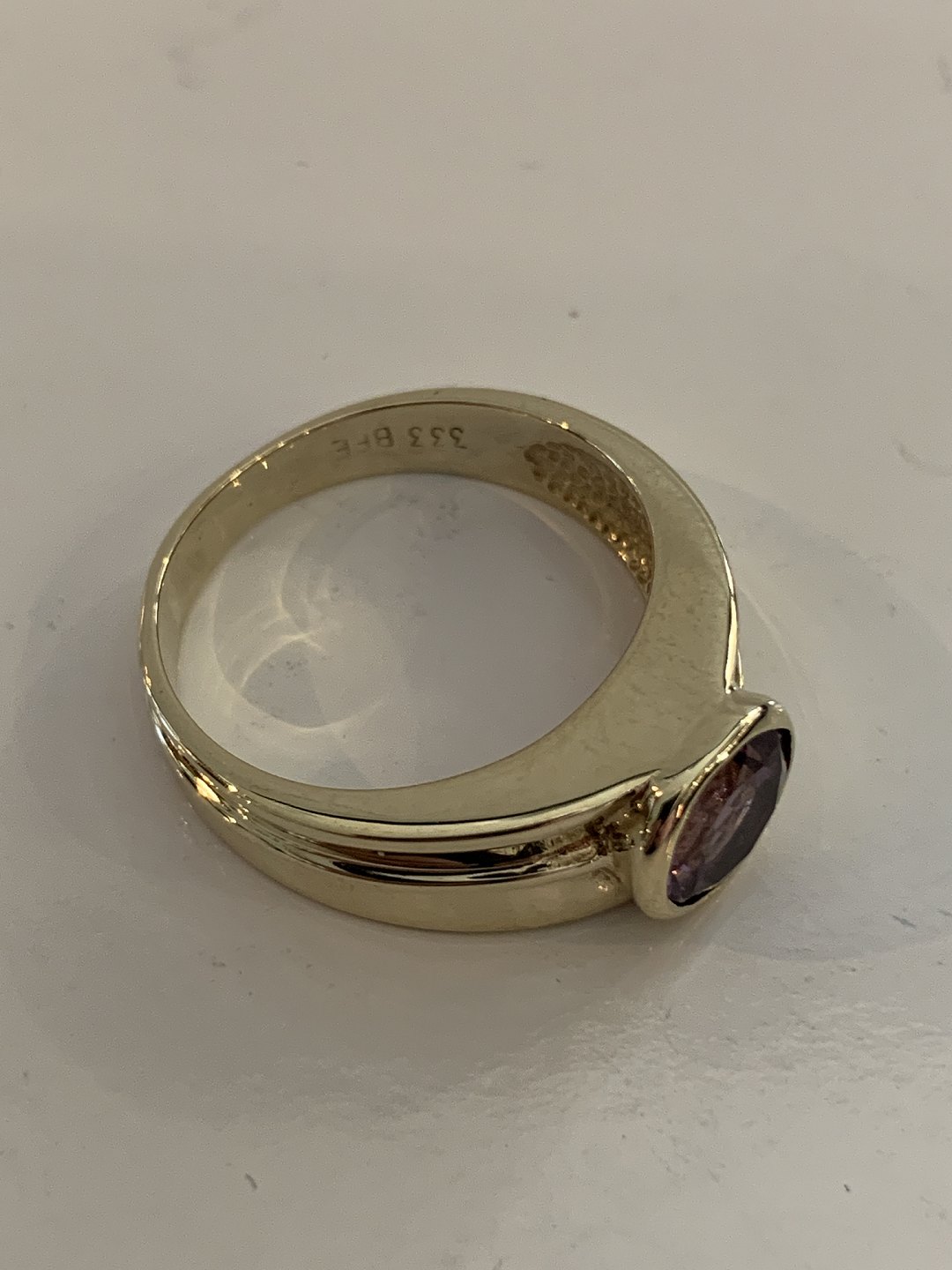 Beskrivelse: Vintage Damering med lilla sten 8 Karat Guld