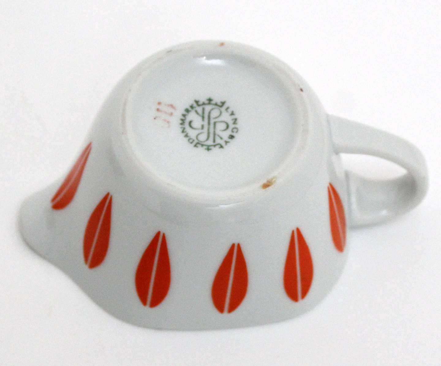 Beskrivelse: Lyngby, Dan-ild porcelæn, Orange Lotus, Flødekande. Serien Lotus er designet af Grete Prytz Kittelsen for Cathrineholm i 1950'erne. God stand med indvendig brændingsplet. Længde 12 cm. Bredde 7,5 cm. Højde 5 cm. Pris: 200 kr. stk. Lager: 1