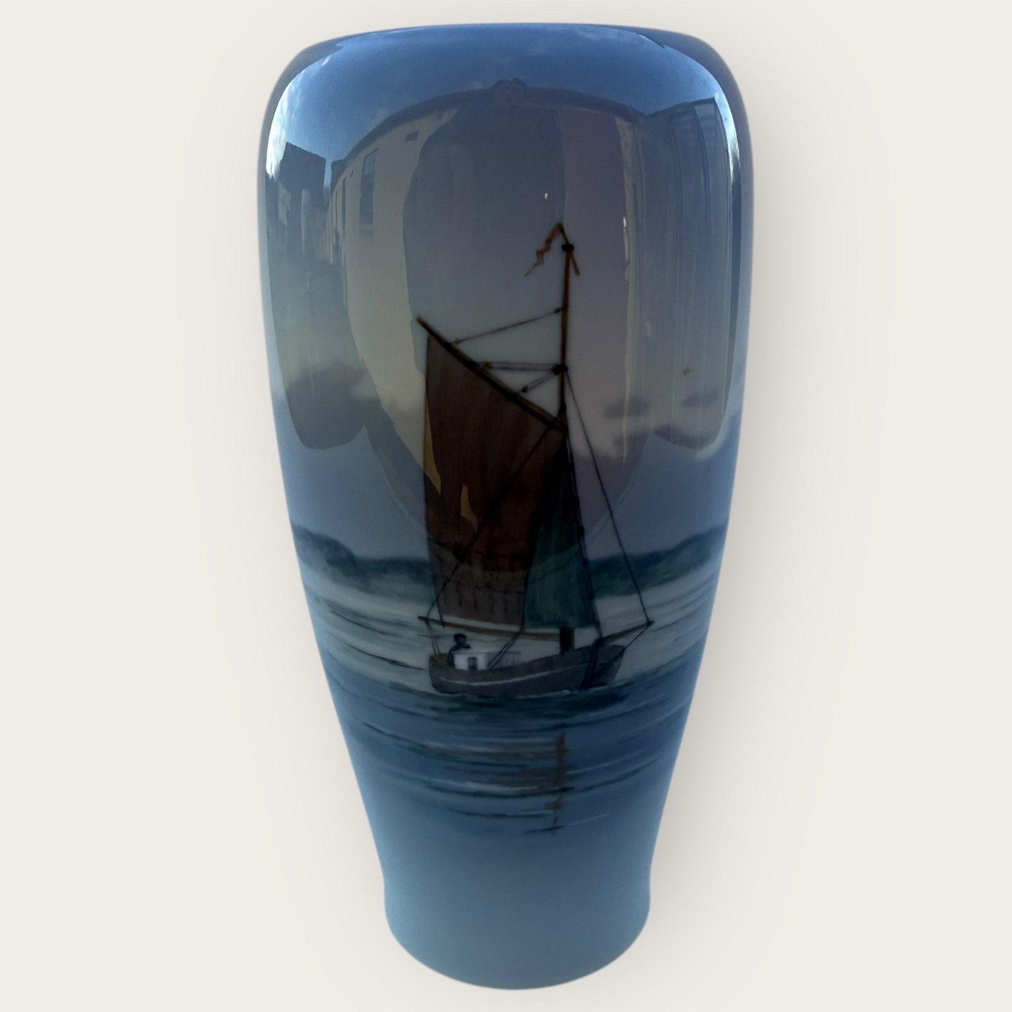Beskrivelse: Royal Copenhagen, Vase med fiskekutter med sejl #2809A/235, 17cm høj, 1.sortering *Pæn stand*